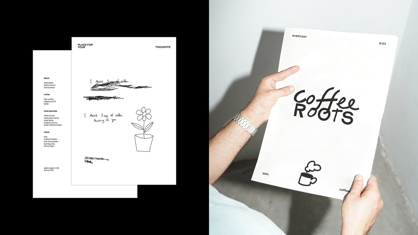 Последнюю страницу меню превратили в пустое пространство для гостей, чтобы оставить рисунок или символ, близкий сердцу. Такие родные воспоминания станут частью визуального стиля, а коллекция изображений — уникальной историей кафе.