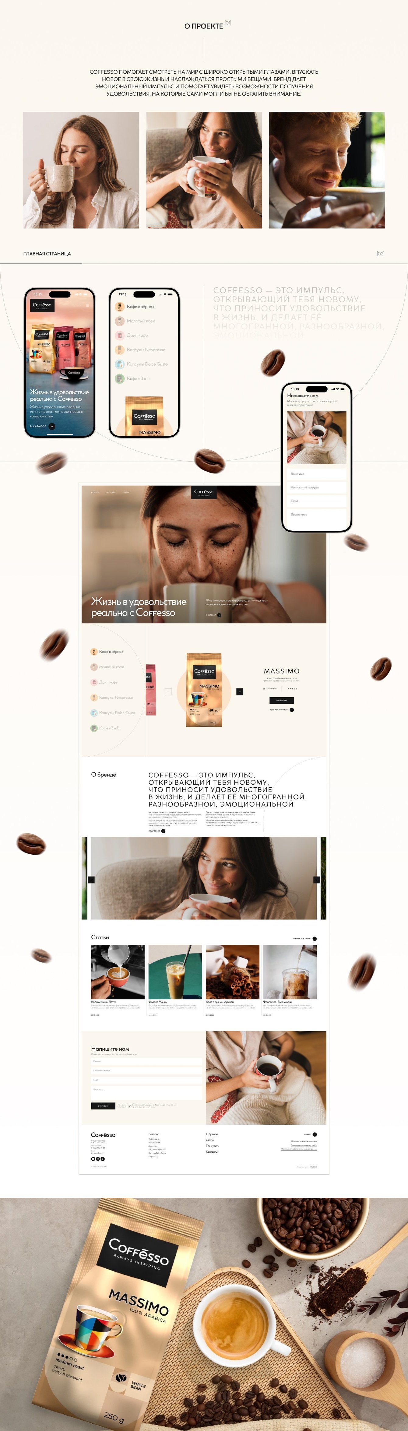 Целью заказчика было создать новый сайт, отвечающий новому позиционированию кофейного бренда Coffesso в соответствии с обновленной стратегией развития.