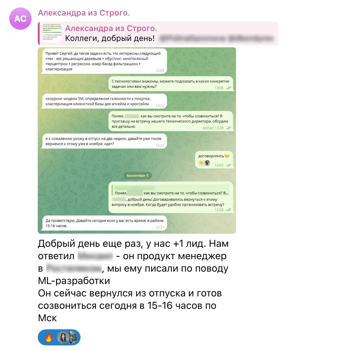 - Появилась своя база знаний — программа наставничества для новых коллег без опыта холодного лидгена.