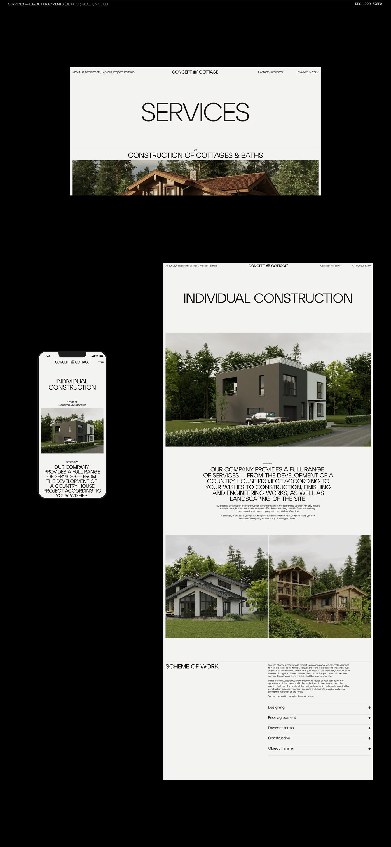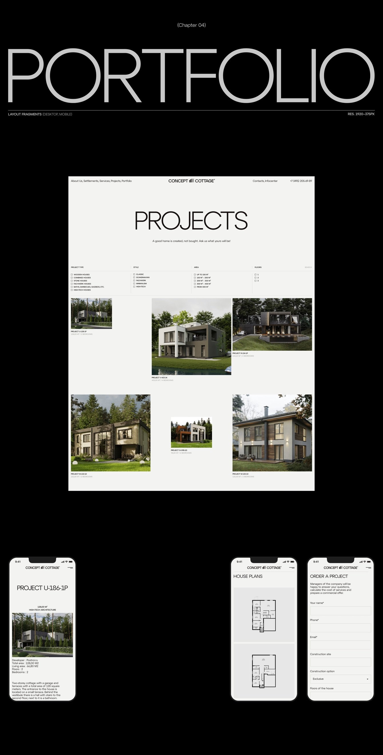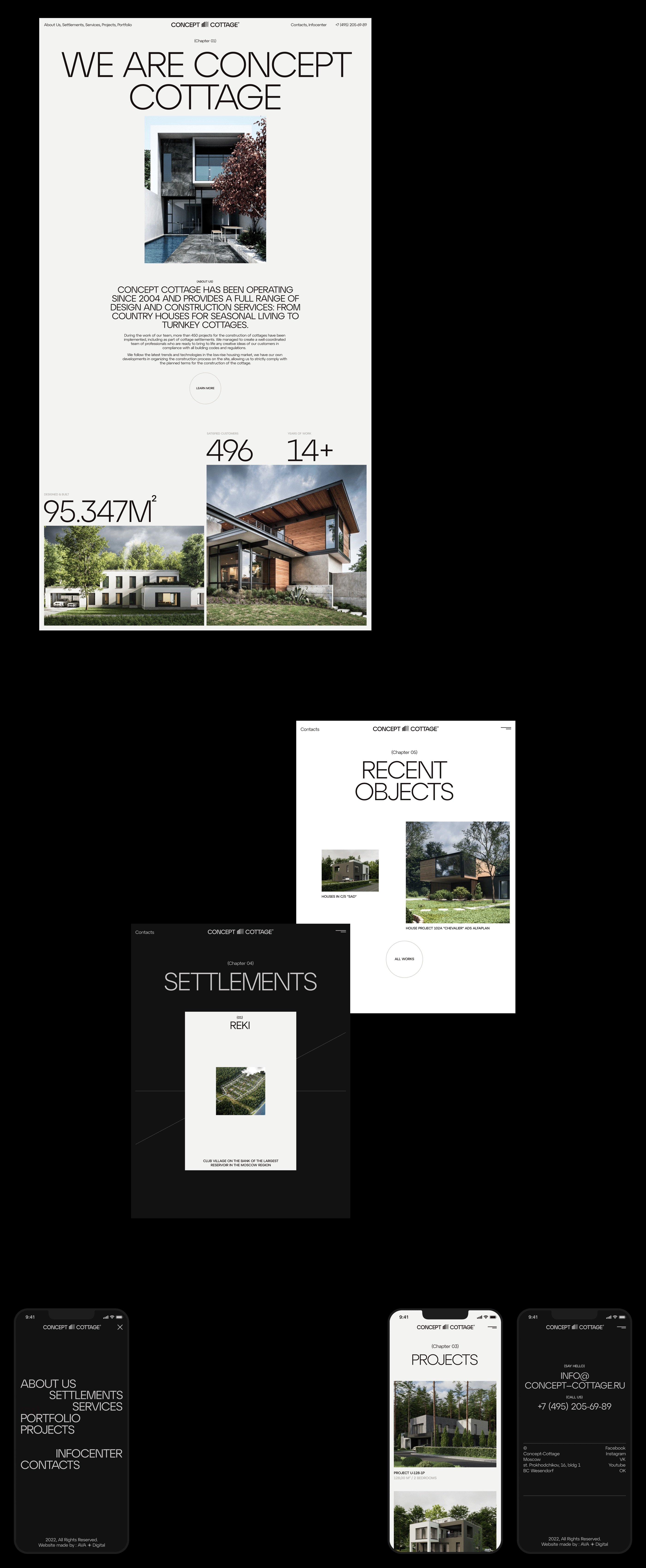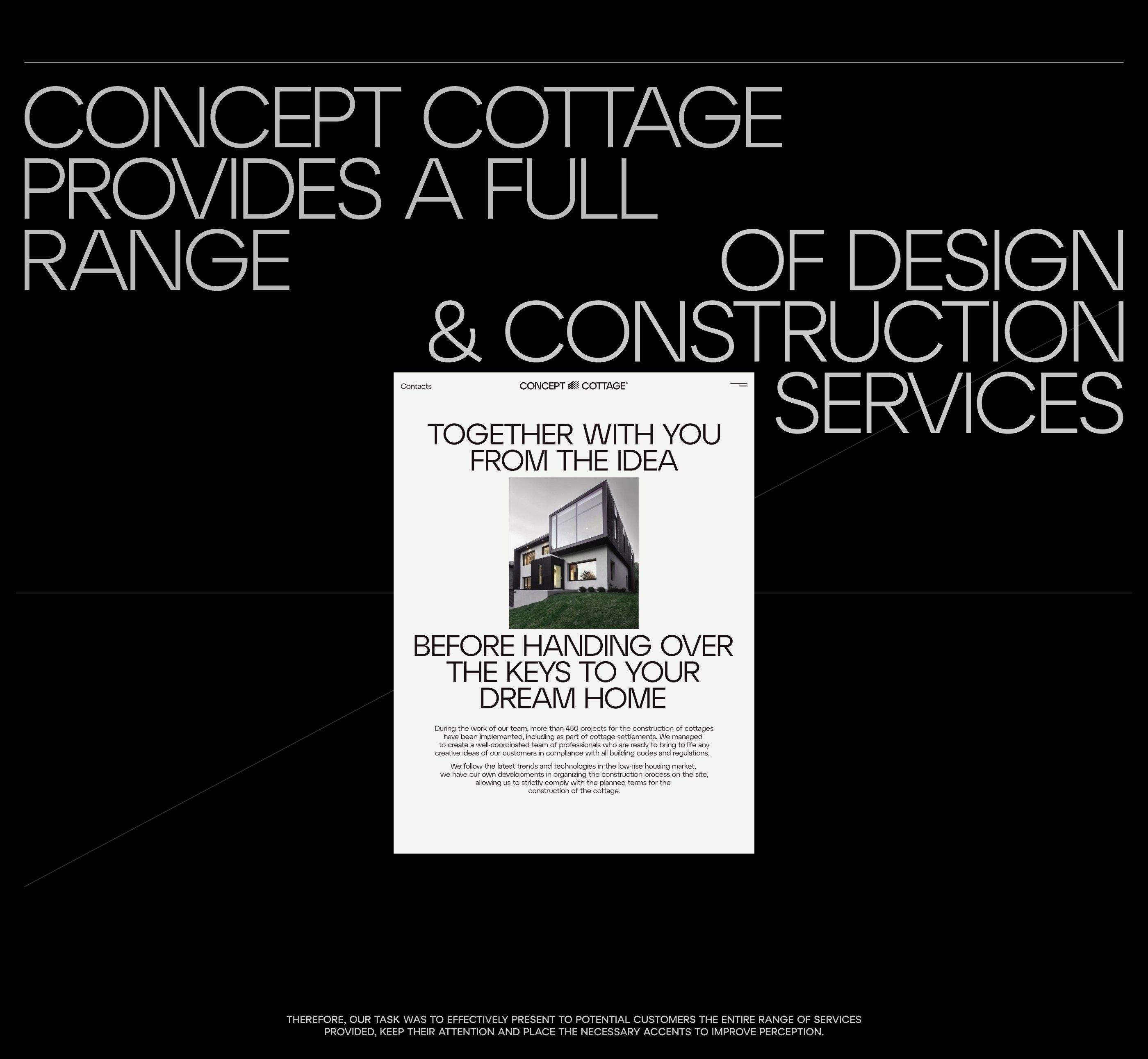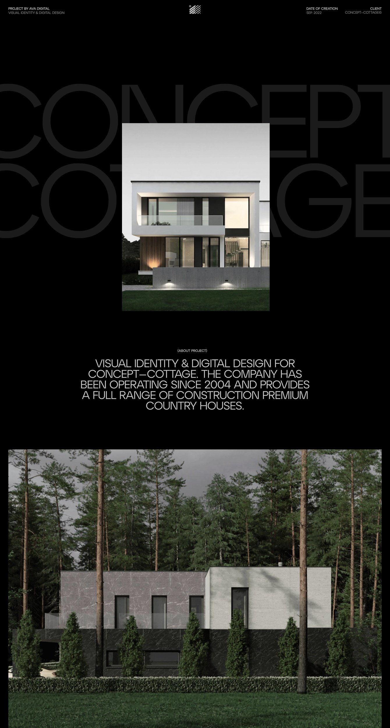 Провели ребрендинг для компании Concept Cottage. Их специализация - строительство современных загородных домов, коттеджных поселков и элитной частной недвижимости.