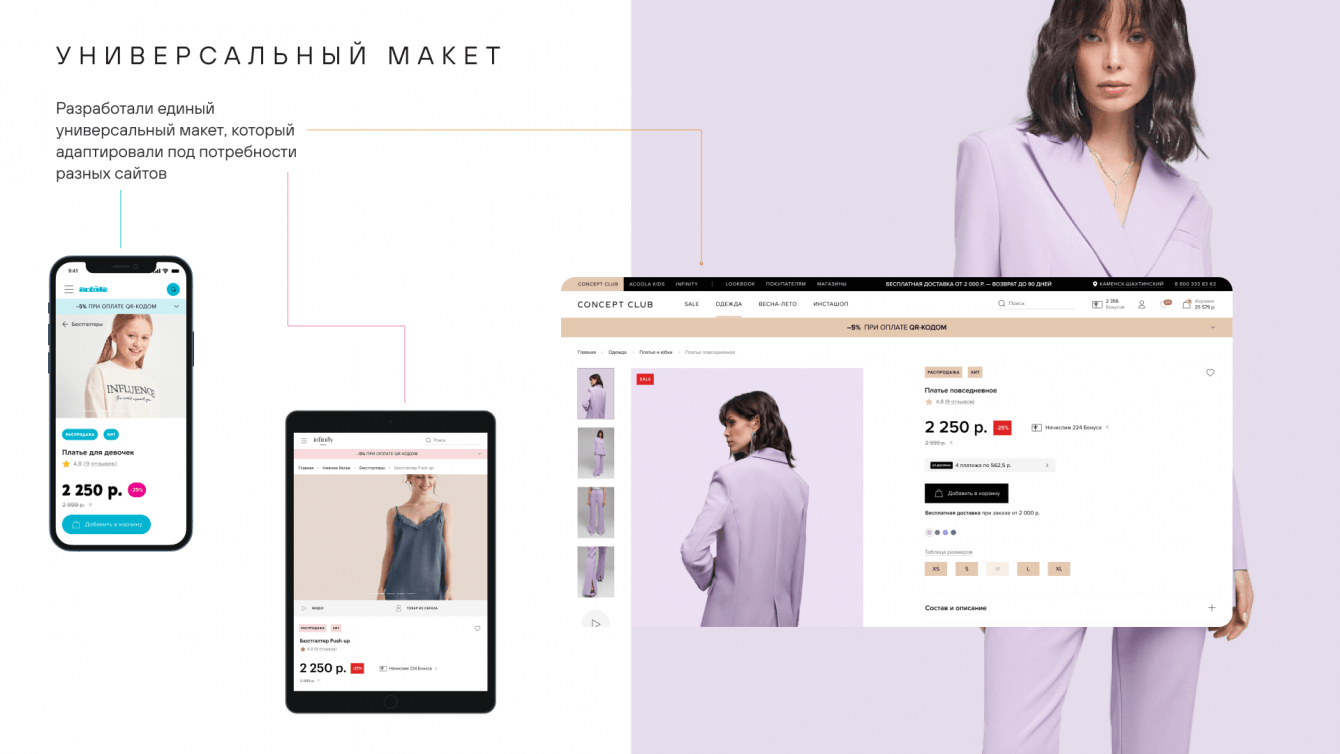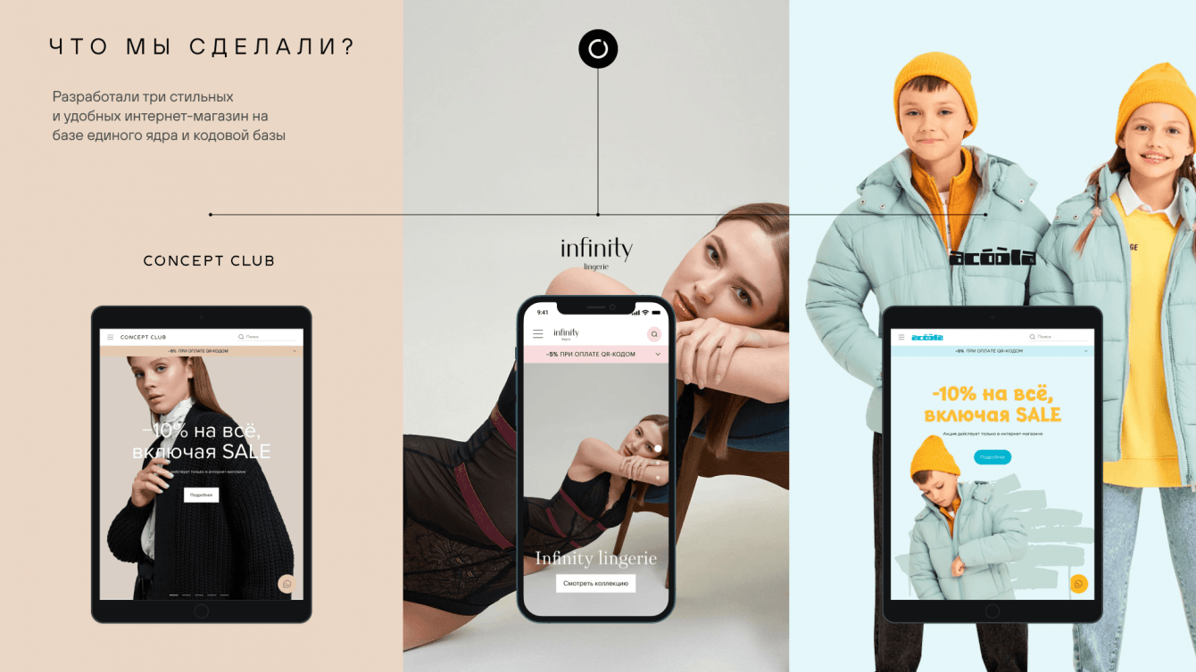 Перед командой ARTW стояла задача разработать и запустить три новых интернет-магазина популярных российских брендов Concept Club, Acoola Кids и Infinity Lingerie.