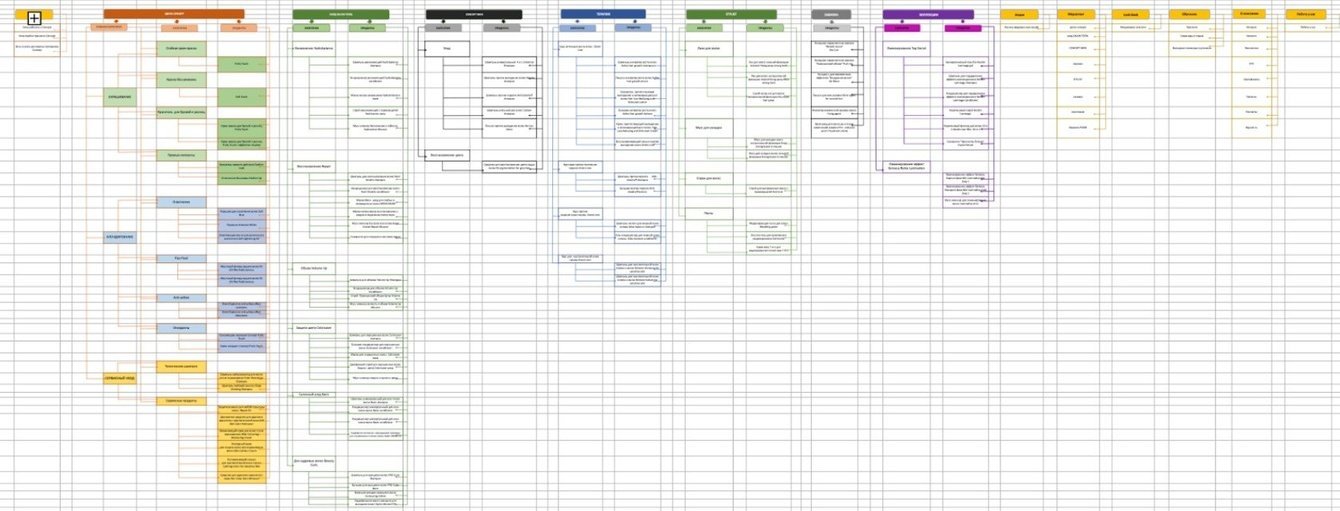 Дополнительно нам была представлена схематичная структура каталога товаров с взаимосвязями разделов (о них еще расскажем), которые должны были появиться на сайте: