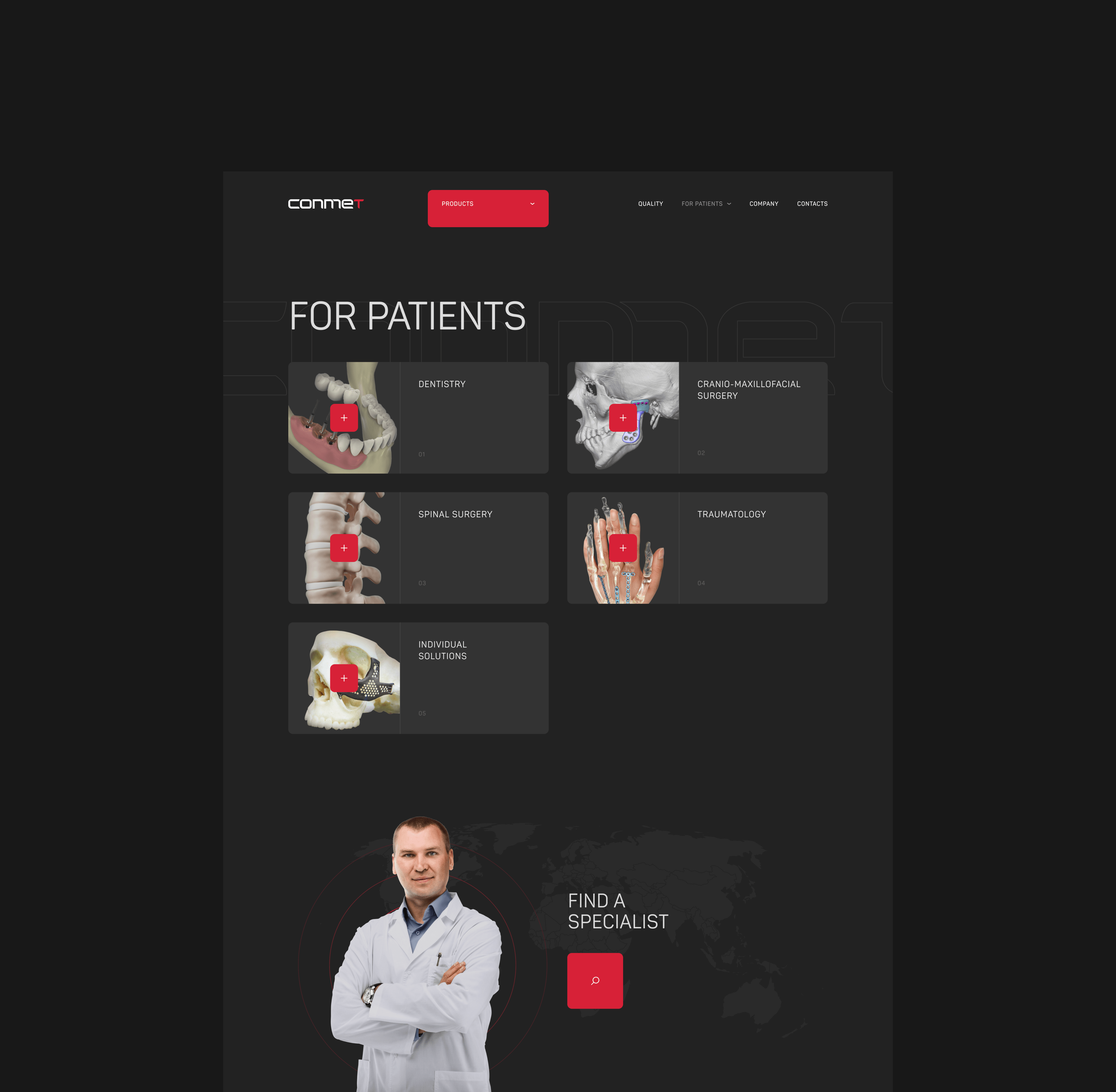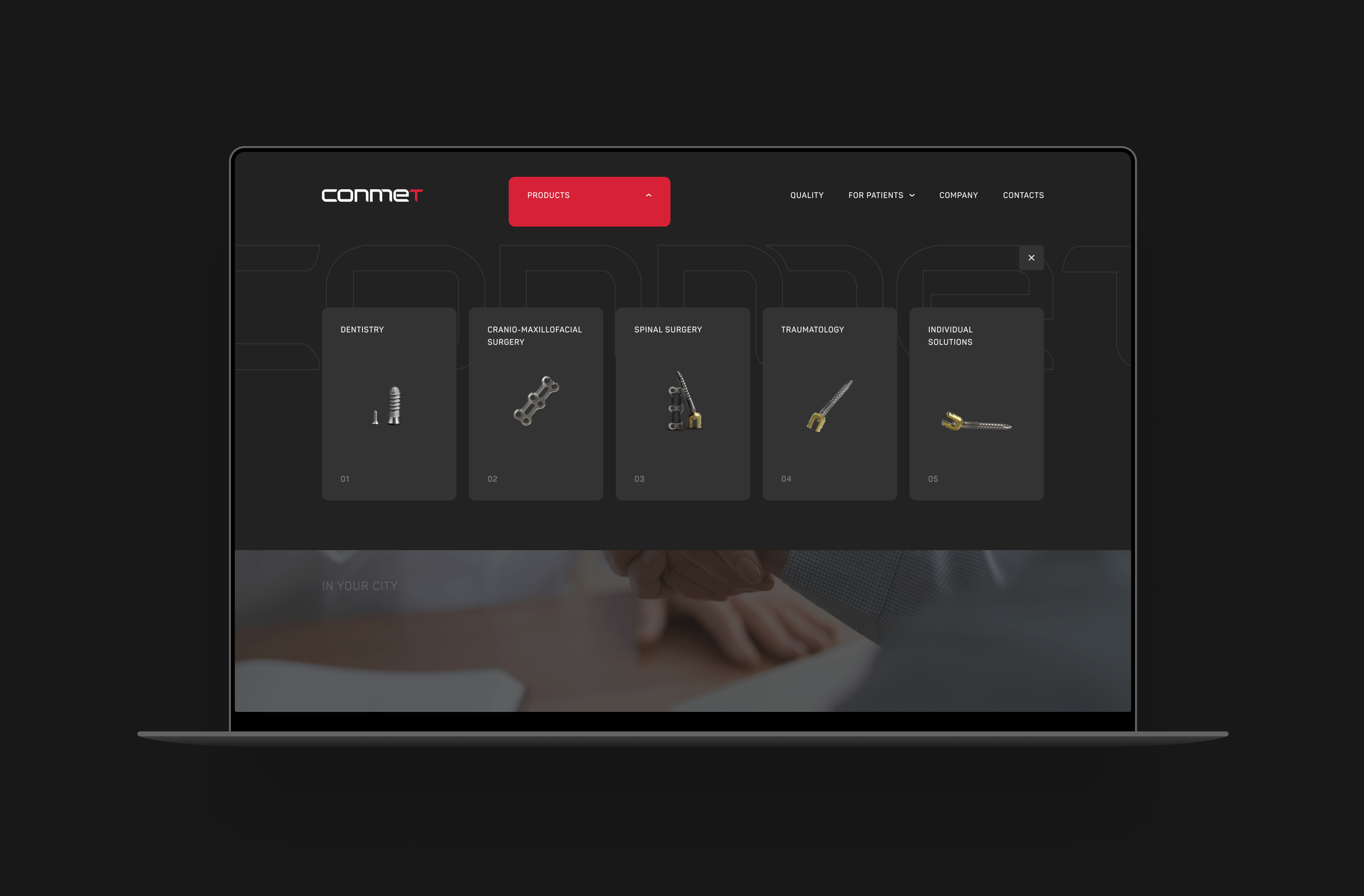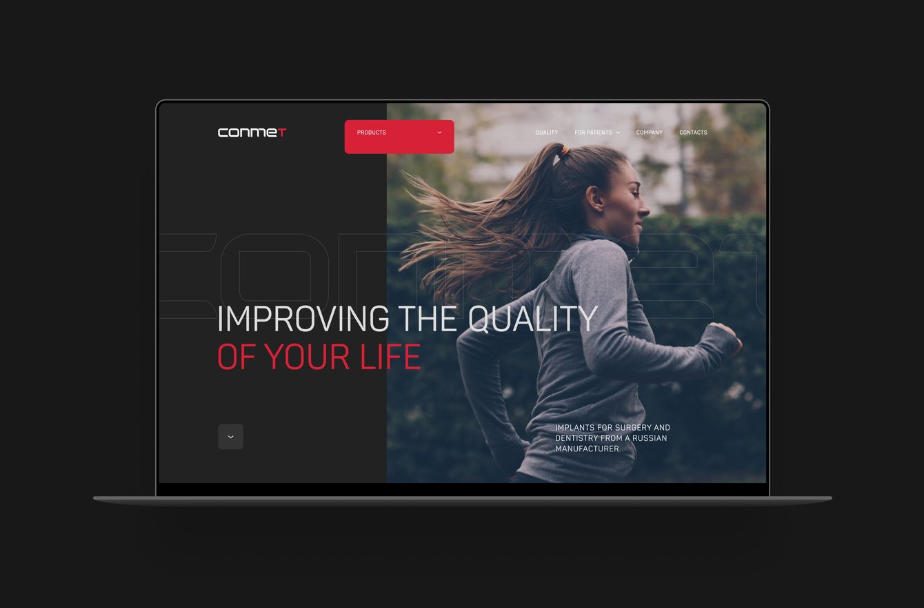 Для конечных клиентов главное, что Conmet помогает решить проблемы со здоровьем и улучшить качество жизни. Сложные технологии Conmet приносят очевидную пользу. Сайт должен выражать надежность и демократичность, подчеркивая доступность и качество имплантов.