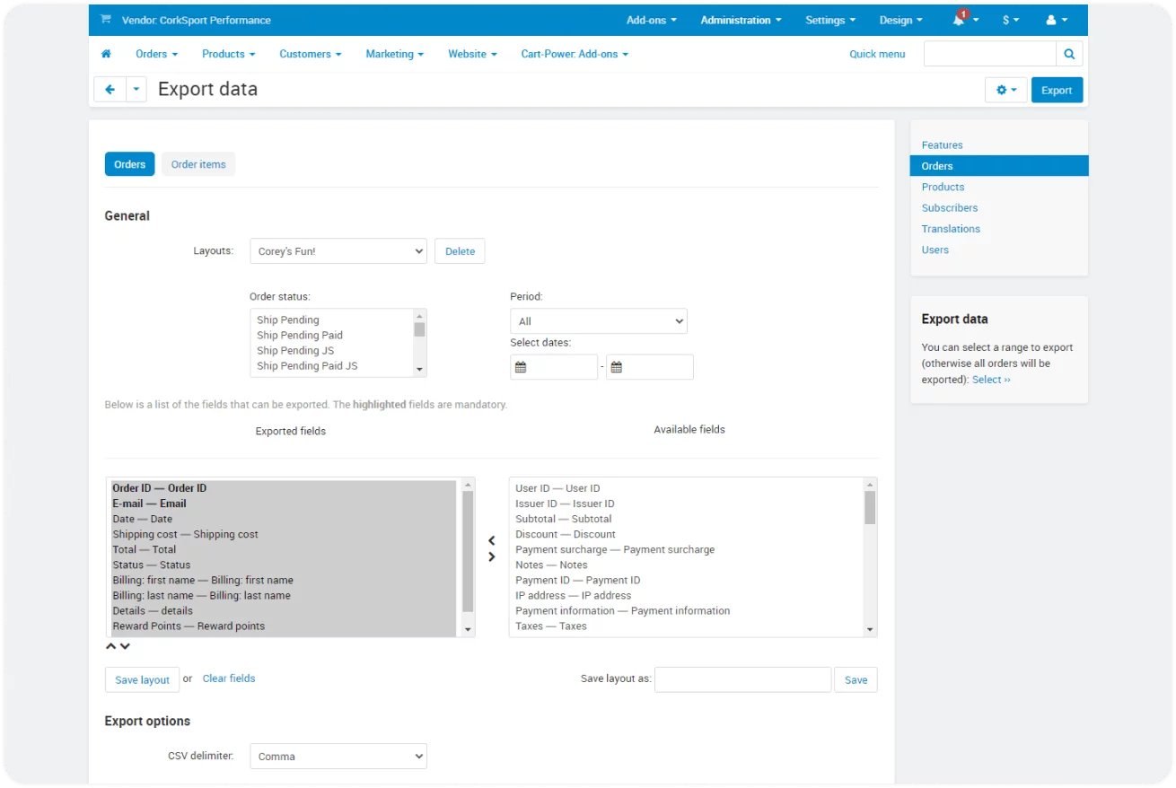 Модифицировали импорт и экспорт, чтобы можно было настраивать, какие заказы надо выгрузить: в зависимости от статуса доставки и периода.