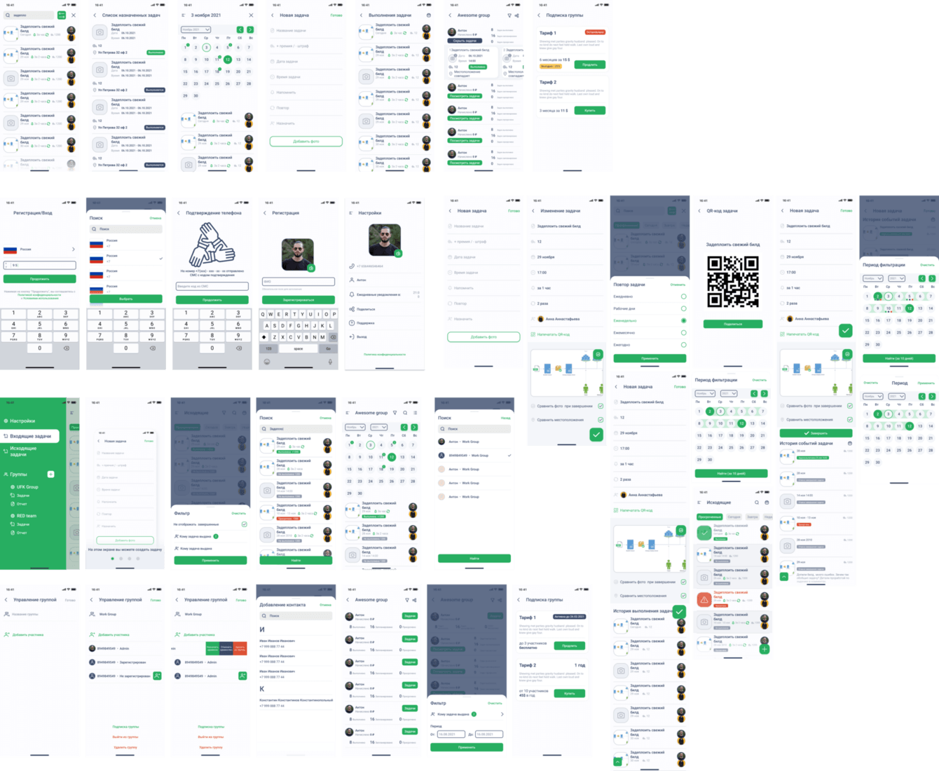После подписания договора и начала сотрудничества мы спроектировали, отрисовали и согласовали с клиентом макет каждого экрана приложения.