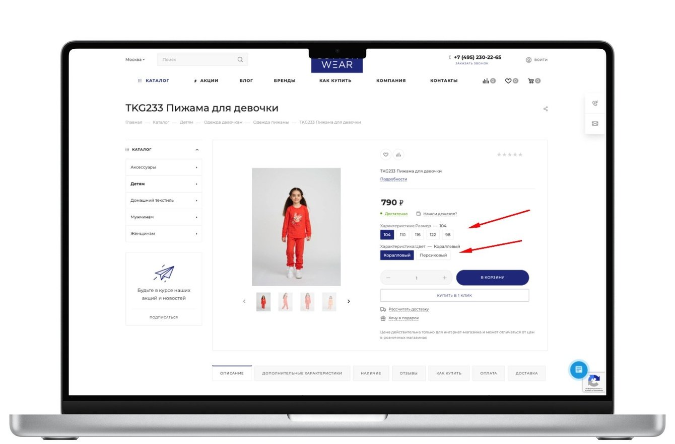 В результате покупателю сайта теперь НЕ приходится видеть множество карточек с одним и тем же товаром, но разных цветов и размеров.