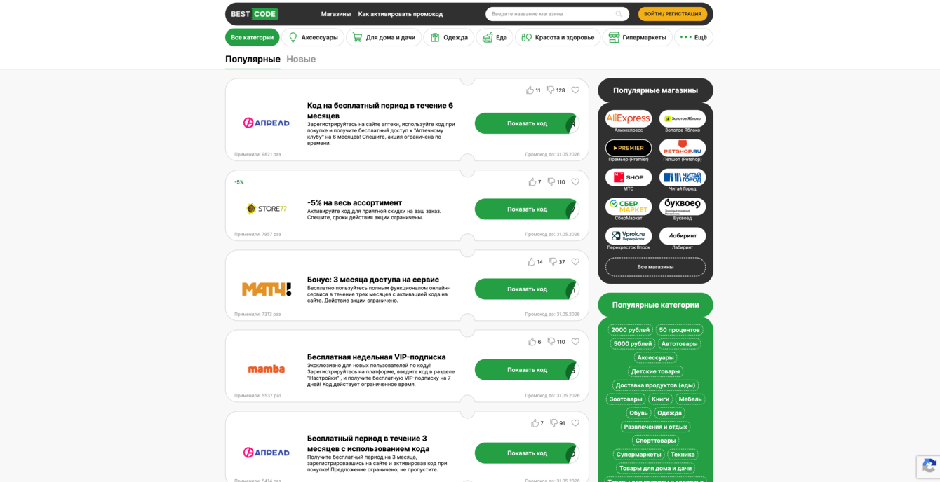 Полная автономия: Сайт работает в автоматическом режиме, обновляя тысячи купонов ежедневно без участия контент-менеджера.