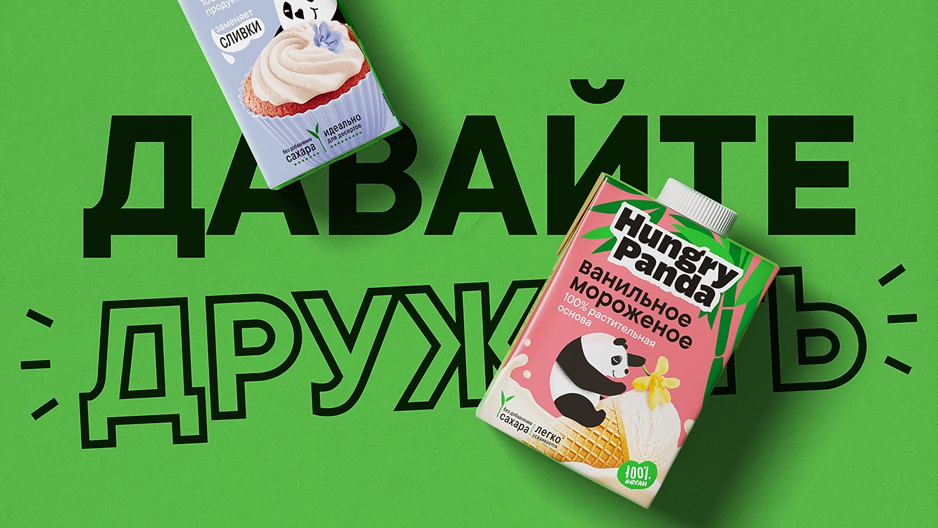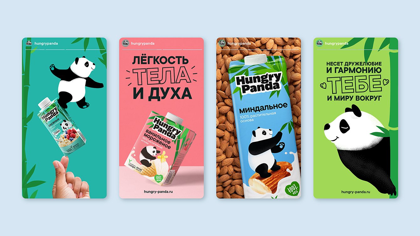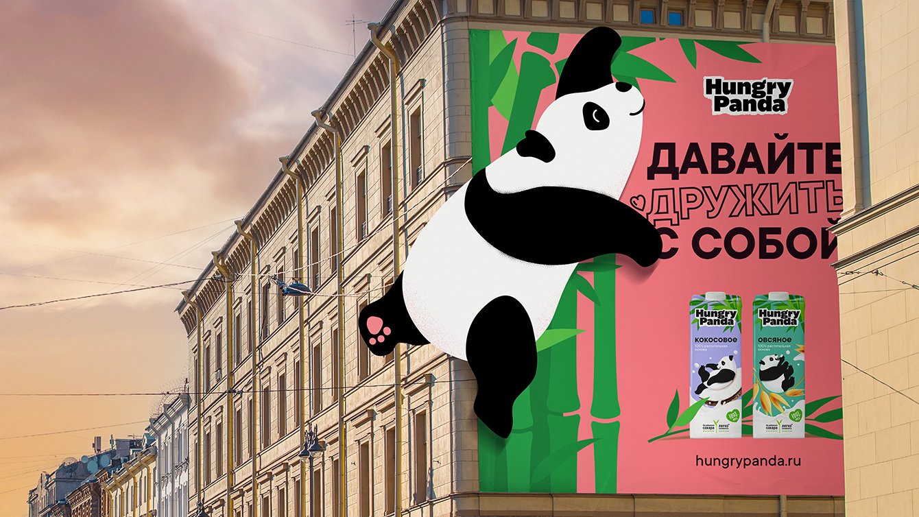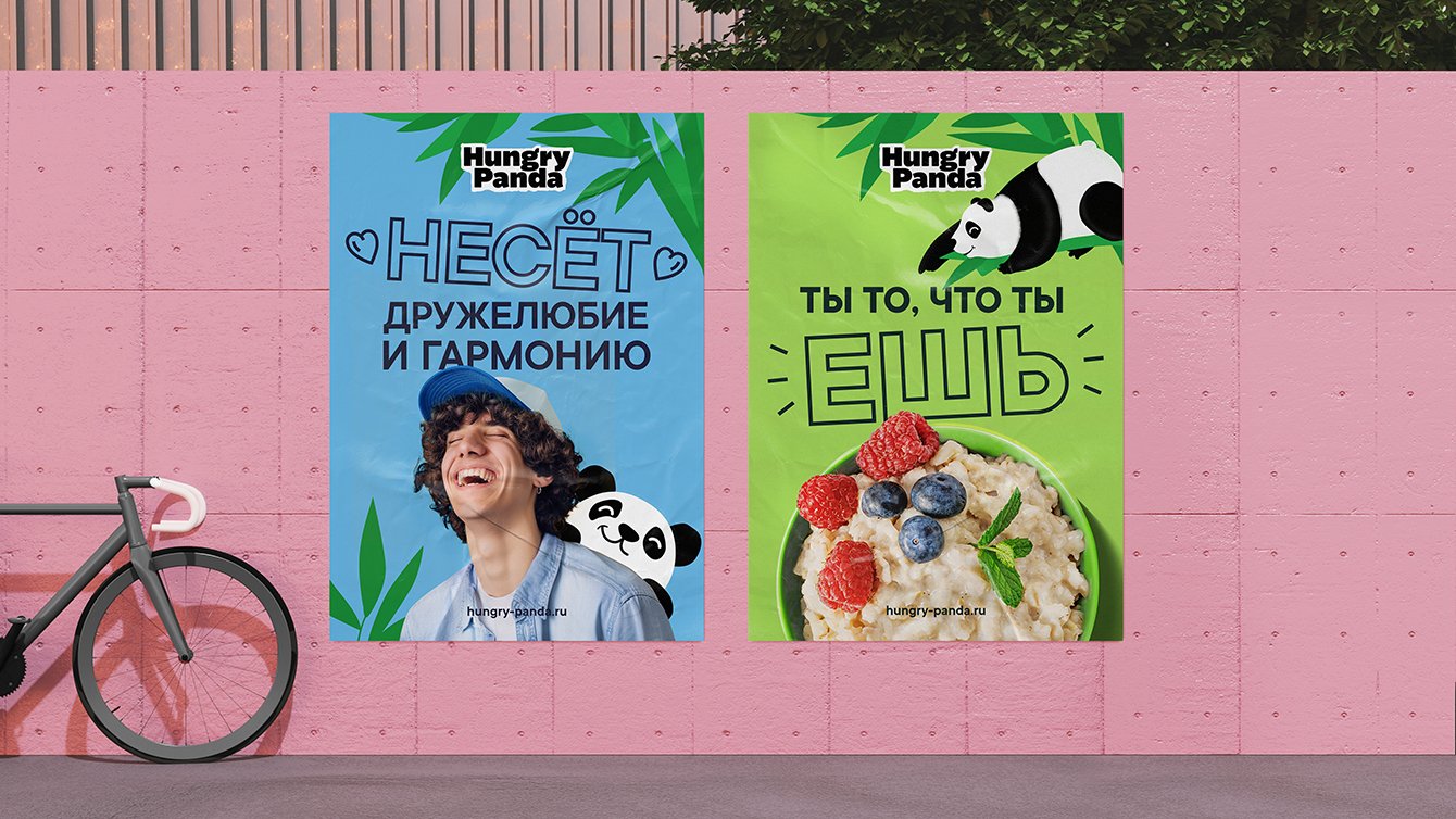 В сегменте растительных продуктов много полезных, но мало игривых и веселых брендов. Мы решили показать, что здоровье — это про лёгкость, радость и жизнь без занудства. Важно было передать характер бренда Hungry Panda, который поддерживает ответственное потребление продуктов.