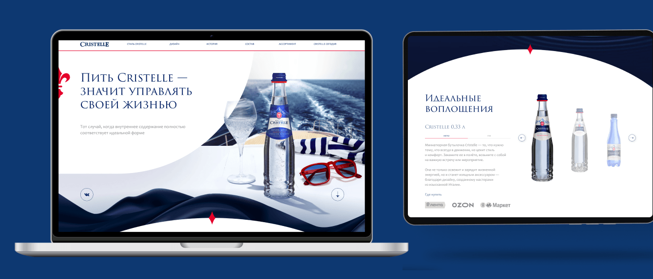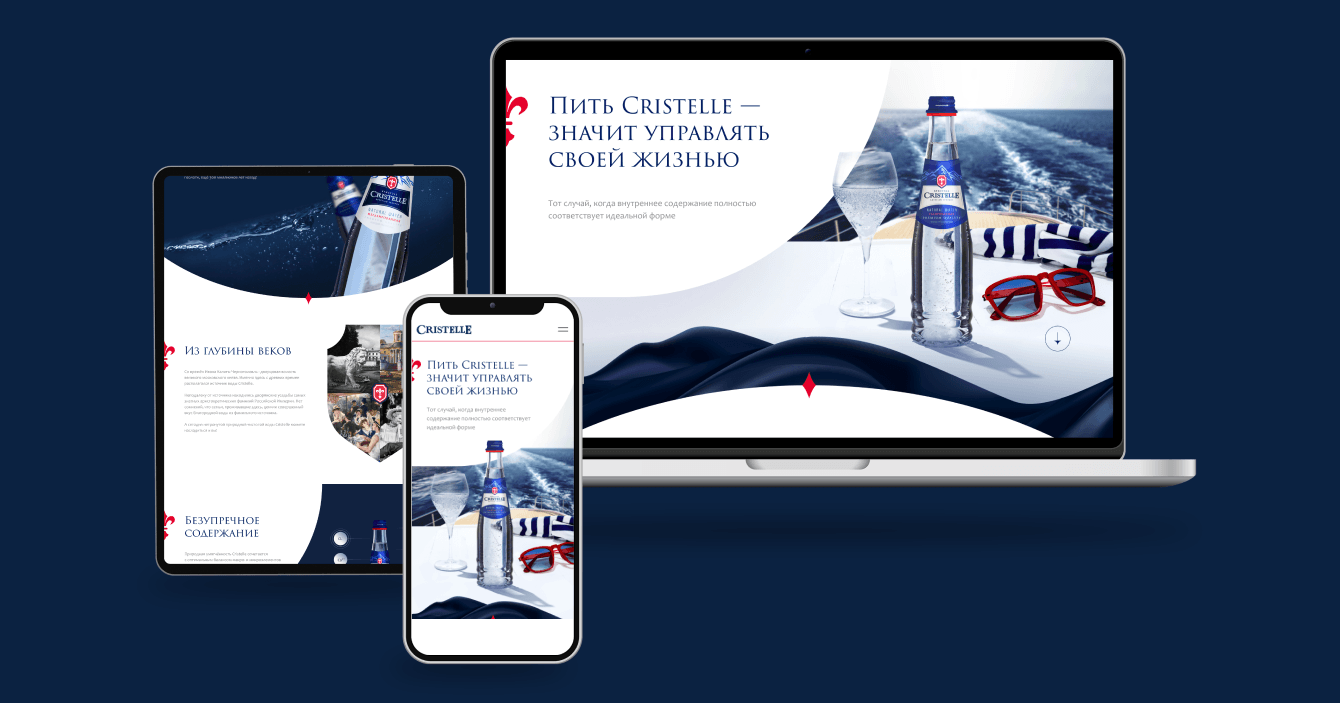 Заказчик обратился к нам с интересным и вдохновляющим запросом на создание имиджевого лендинга для бренда природной питьевой воды Cristelle. Этот проект должен не только подчеркнуть уникальность и высокое качество продукции, но и создать атмосферу, отражающую философию бренда — стремление к чистоте и гармонии.
