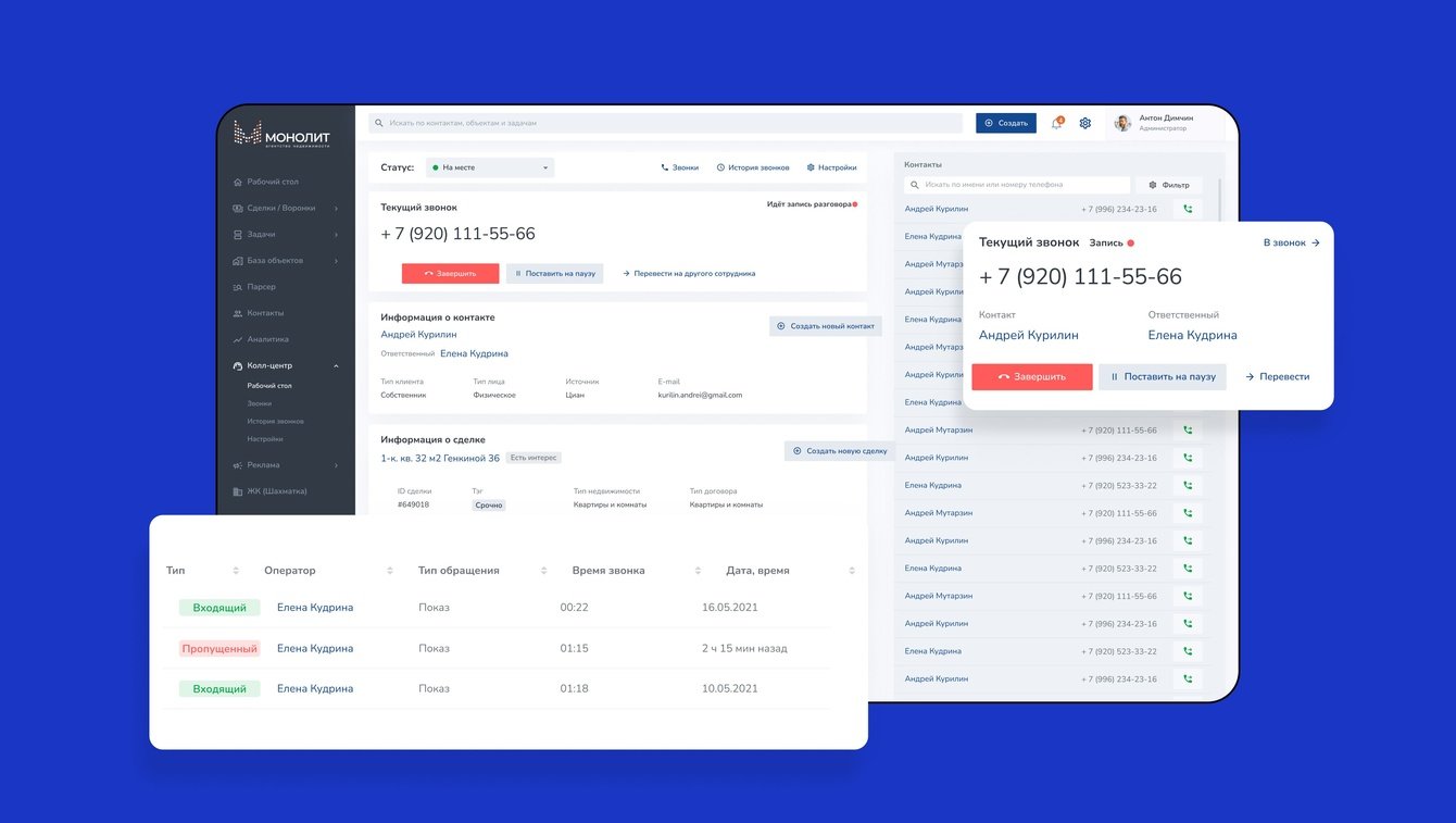 В существующих CRM нет части важных функций, поэтому «Монолиту» нужно свое решение, в котором сотрудникам было бы удобно работать, а руководству — контролировать процессы и следить за аналитикой.