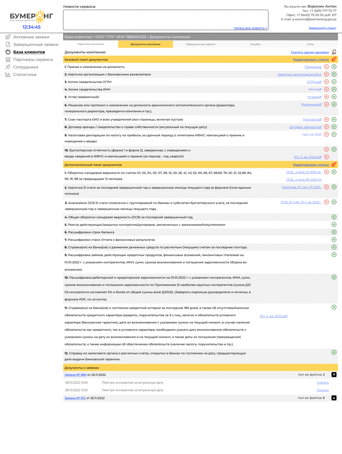 Это CRM система для компании, предоставляющей финансовые услуги для бизнеса. Приложение позволяет вести полный процесс работы с заявкой клиента от создания страницы клиента и заявки на банковский продукт до финализации решения по запросу. При этом платформа дает возможность распределять задачи между сотрудниками, следить за статистикой, генерировать итоговые документы для успешных сделок. Также пользователь может поставить для себя напоминание, уведомление о котором придет ему в выбранное время на электронную почту и в мессенджер Телеграм.