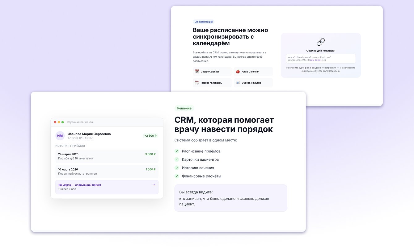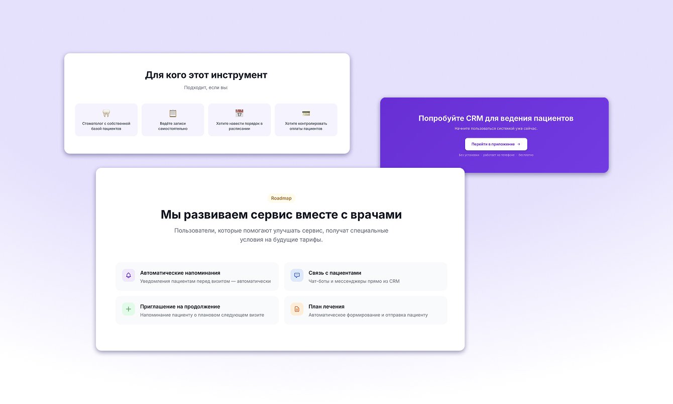 Цель: создать удобный способ для ведения пациентов, записи и оплаты приема
