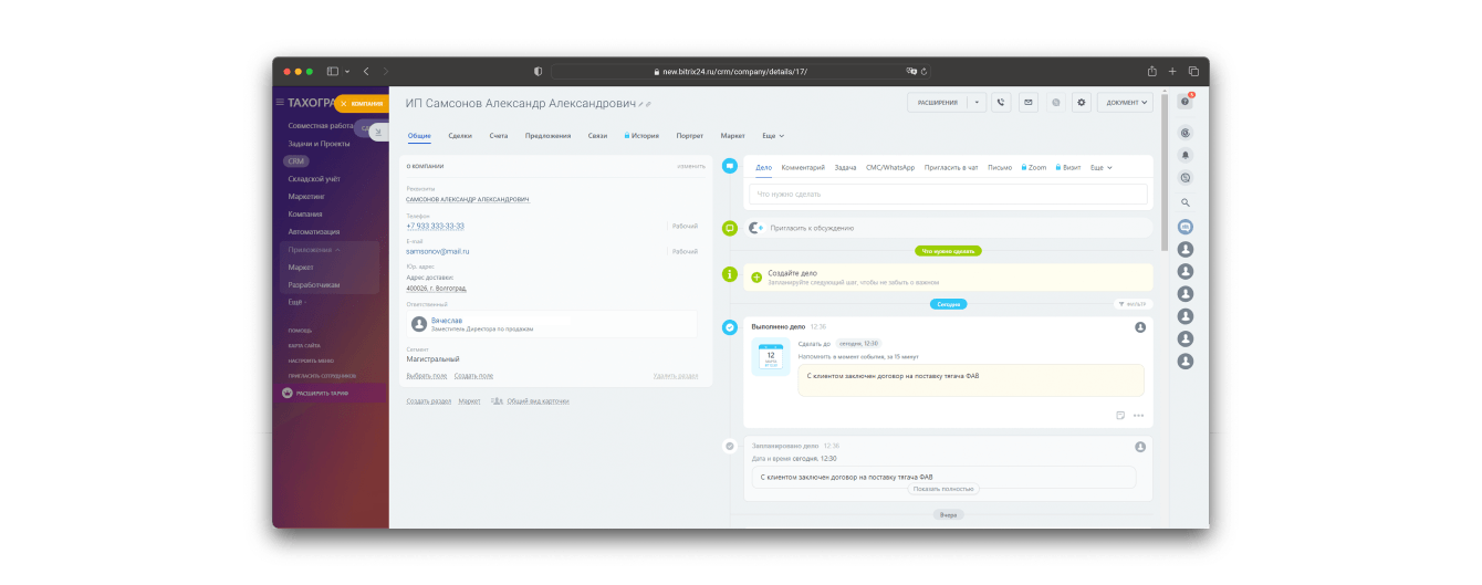 Руководитель получил инструмент для прозрачного контроля над продажами, отслеживания активности сотрудников при ведении сделки. Напоминания помогают менеджерам в работе, не позволяя забыть о клиенте, а автоматизация избавила от рутинных повторяющихся действий.