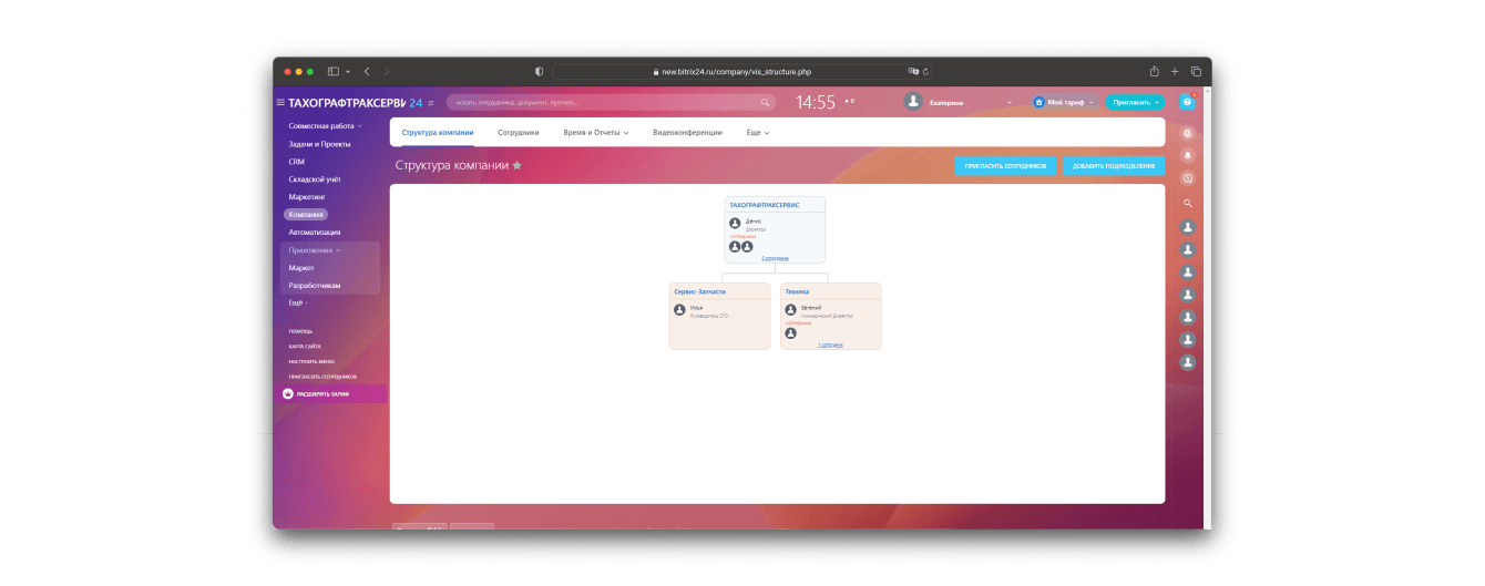 – создана иерархия отделов в соответствии с внутренней структурой компании;