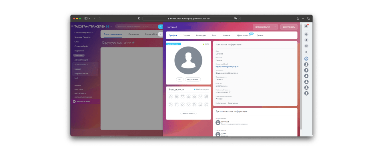 В рамках внедрения и настройки Битрикс24 наша команда реализовала следующие задачи: