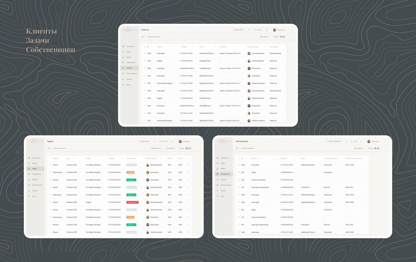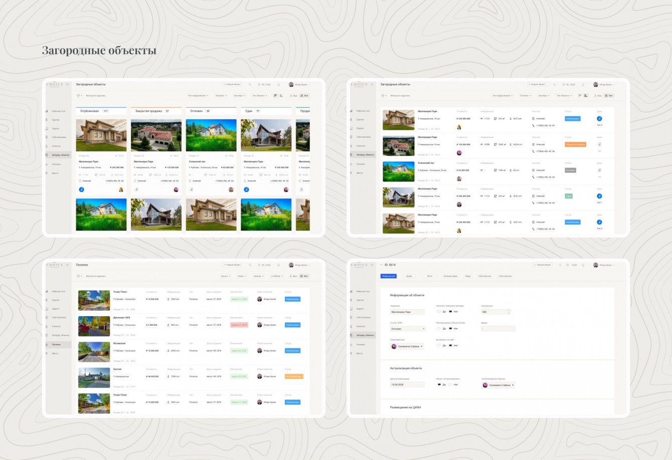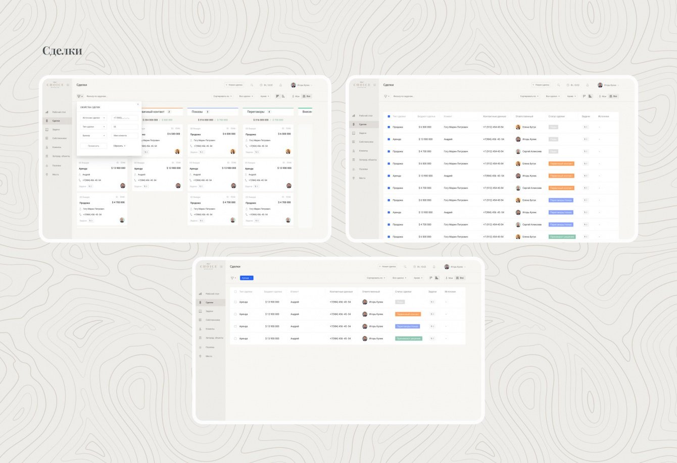 CRM Choice Estate – проект по созданию CRM-системы для агентства элитной недвижимости Choice Estate. Разработка системы входит в комплекс задач, с которыми Choice Estate обратились к нам, и которые мы успешно выполнили. Помимо создания самой CRM-системы, наша команда разработала дизайн и подготовила иллюстрации, которые позволили сделать информацию более наглядной и удобной для восприятия. В результате система стала простым для использования рабочим инструментом с лаконичным дизайном.