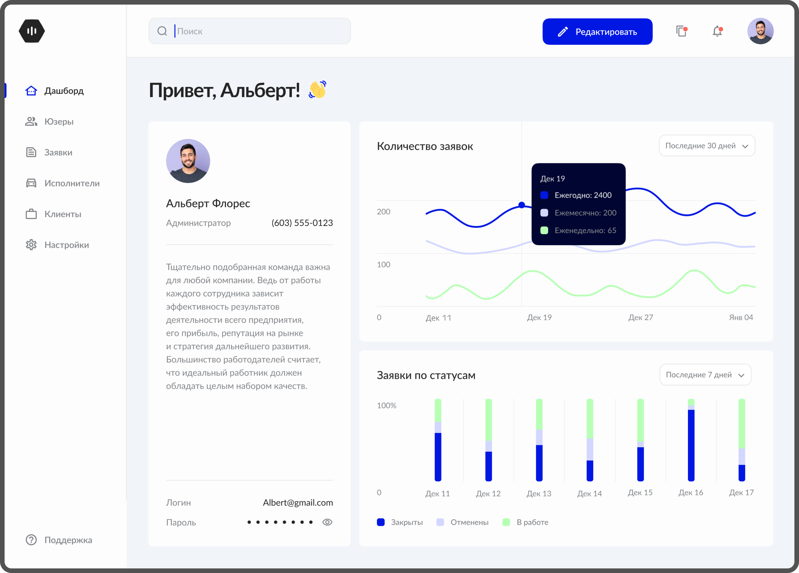 Супер администратор - полный доступ к системе. Операционный и финансовый учет компании.