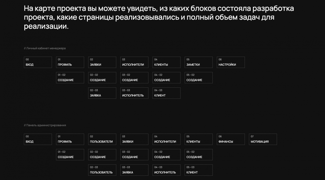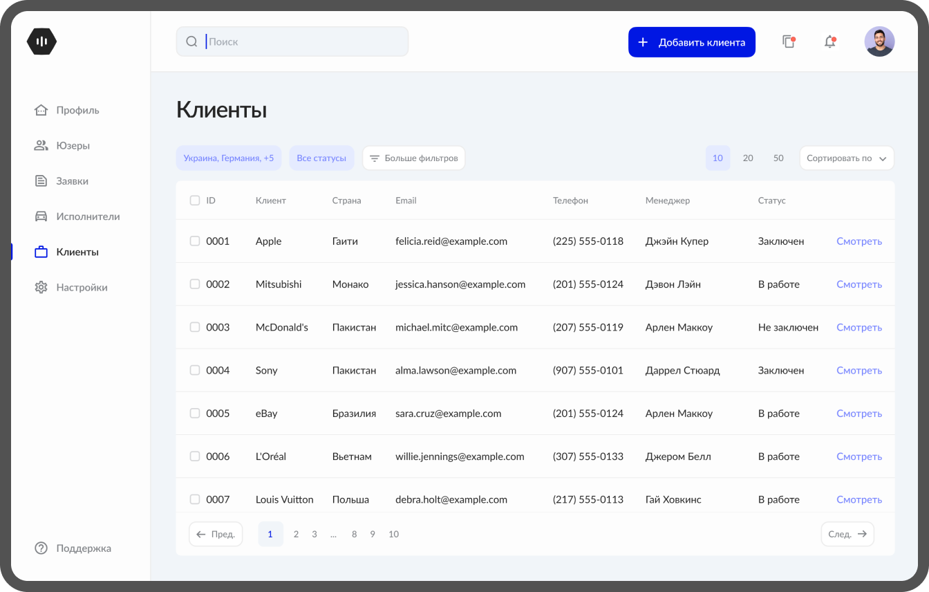 Менеджер - доступ к своим сделкам, заявкам, исполнителям, заказчикам.