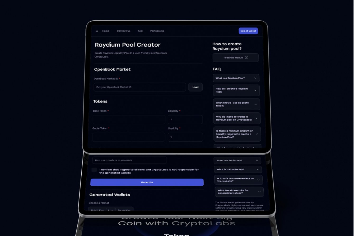 1) Создание токена и редактирование собственных токенов: Платформа предоставляет пользователям возможность создавать свои собственные токены на блокчейн-сети Solana. Пользователи могут настраивать параметры токенов, такие как название, символ, общее количество и децимальные места. Также предусмотрена функция редактирования существующих токенов, что позволяет пользователям вносить изменения в параметры токенов по мере необходимости.