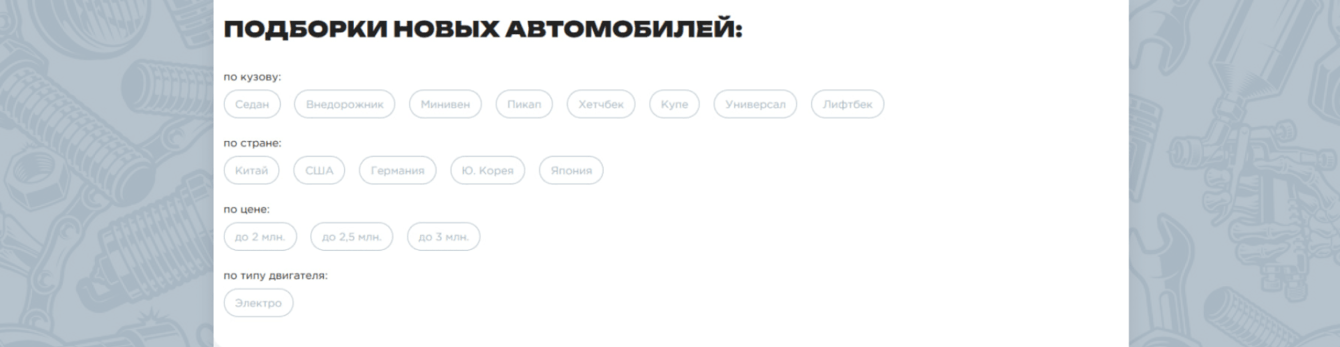 Мы создали много листингов: по цветам, кузовам, цене, видам привода, даже по типу коробки передач.