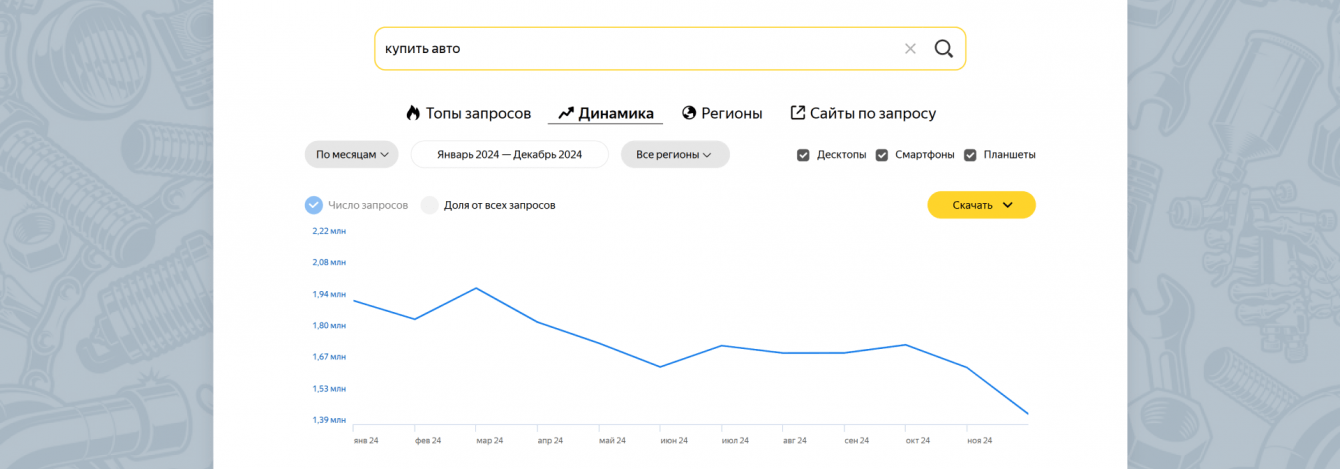 • падению поискового спроса — люди либо уже купили авто, либо ждут, что будет дальше.