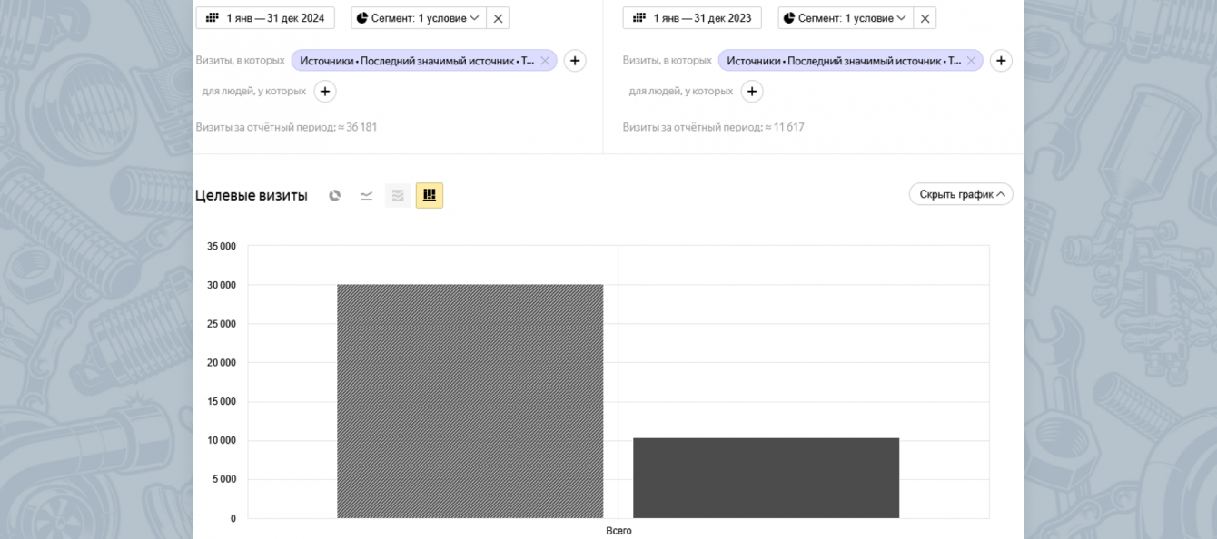 Количество целевых визитов из поисковых систем выросло в 3 раза — с 11 617 до 36 181: