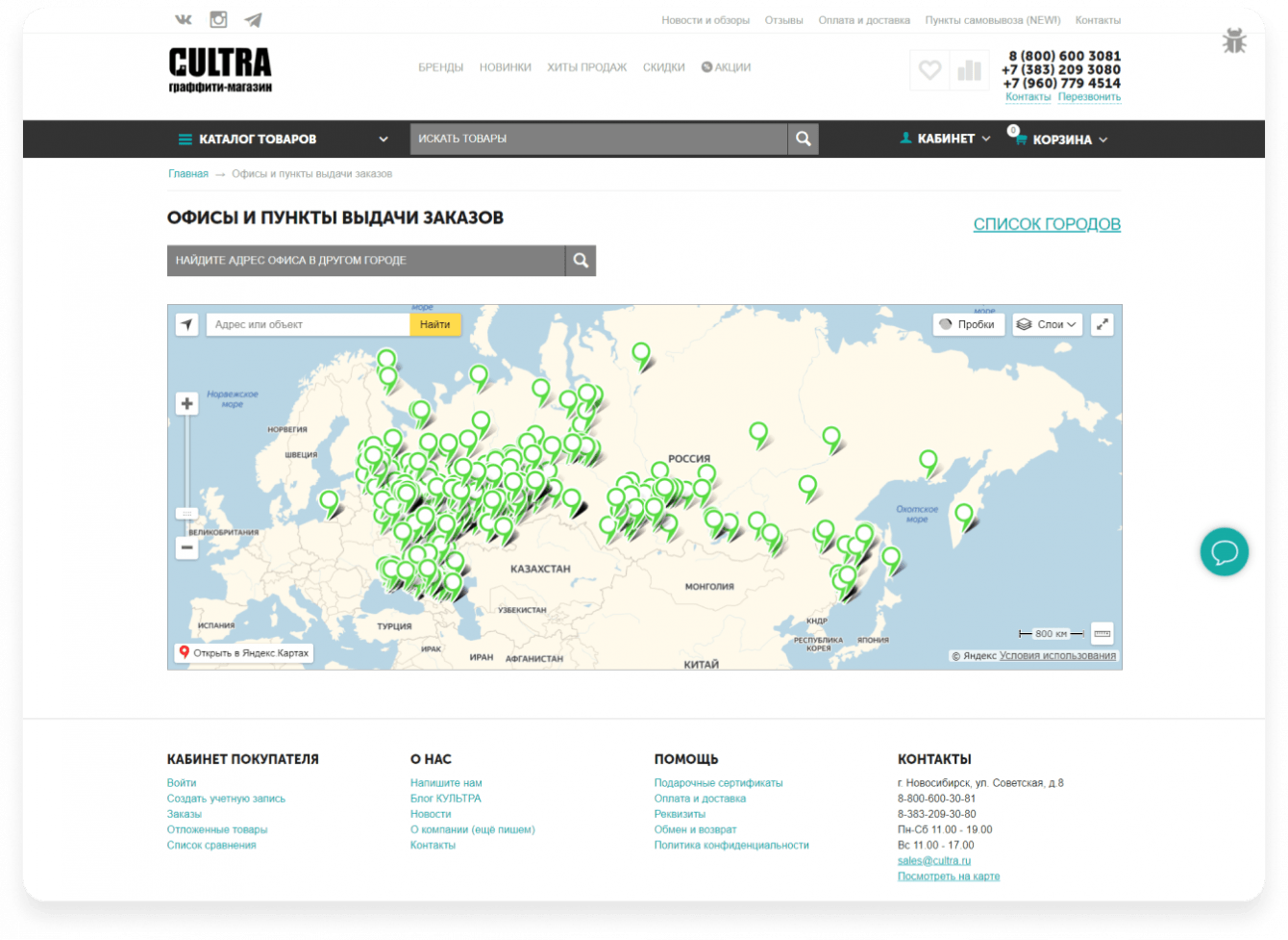 Мы интегрировали комплексное решение по отображению пунктов выдачи заказов СДЭК на Яндекс.Карте. Покупатель может по карте выбрать ближайший к себе офис СДЭК и не переплачивать за доставку.