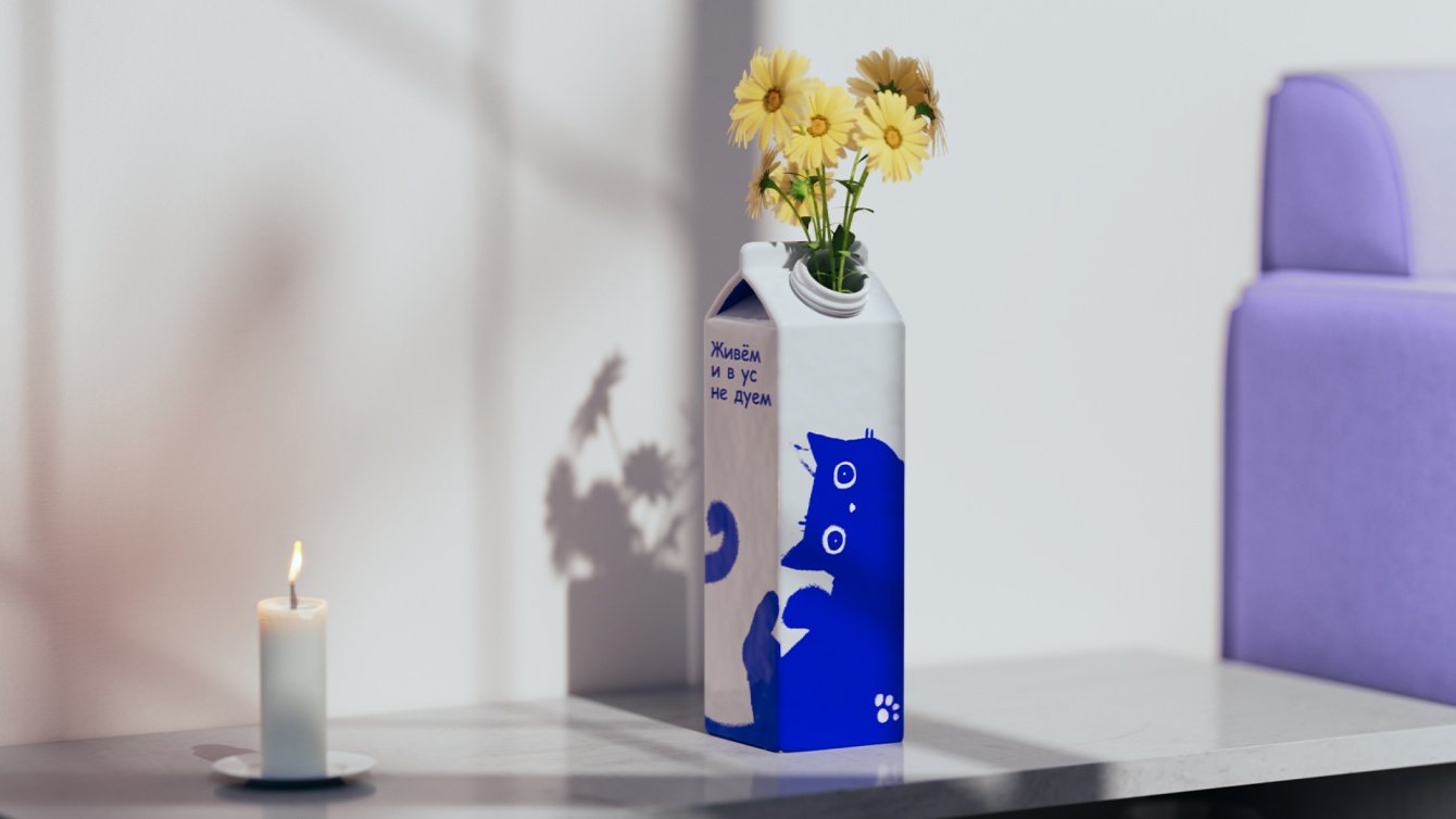 История нашего сотрудничества с брендом «Милград» от «Брянского молочного комбината» началась ещё в 2019 году. Тогда вместе с коллегами мы провели успешный ребрендинг. Наша команда разработала позиционирование и новый дизайн упаковки молока и молочных продуктов, основой которого стал синий кот. Игривый и такой живой, он нашёл отклик в сердцах людей со всего света. Люди стали генерить большое количество постов, мемов и иллюстраций с маскотом «Милграда» и другой атрибутикой бренда. В профессиональном сообществе проект тоже получил широкое признание, о чём свидетельствуют многочисленные награды на фестивалях.