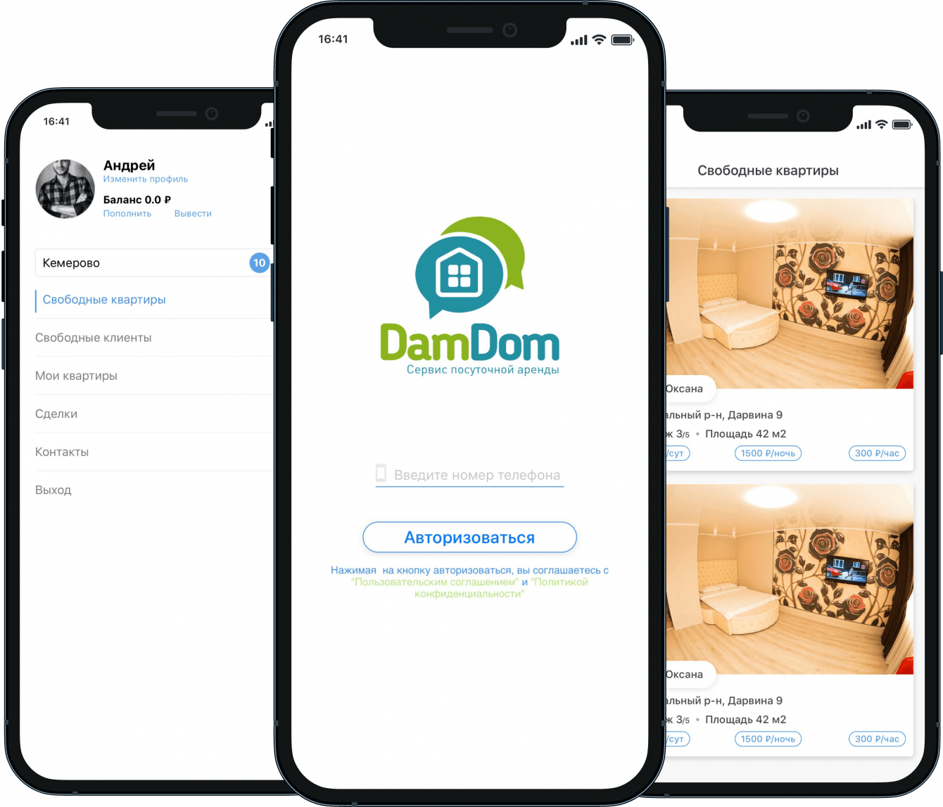 Посуточная аренда недвижимости: разработка мобильного приложения DamDom (iOS/Android), в котором: