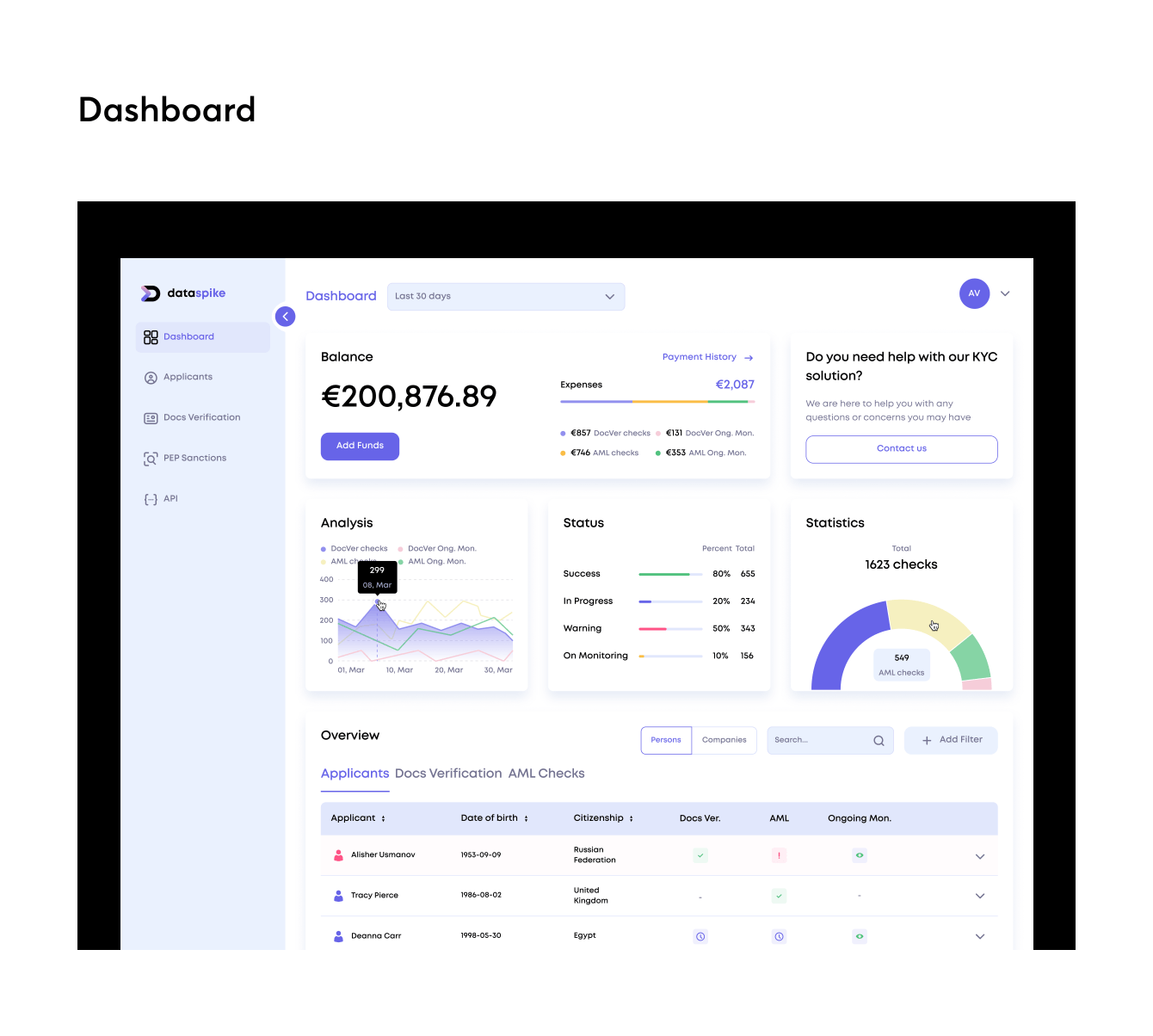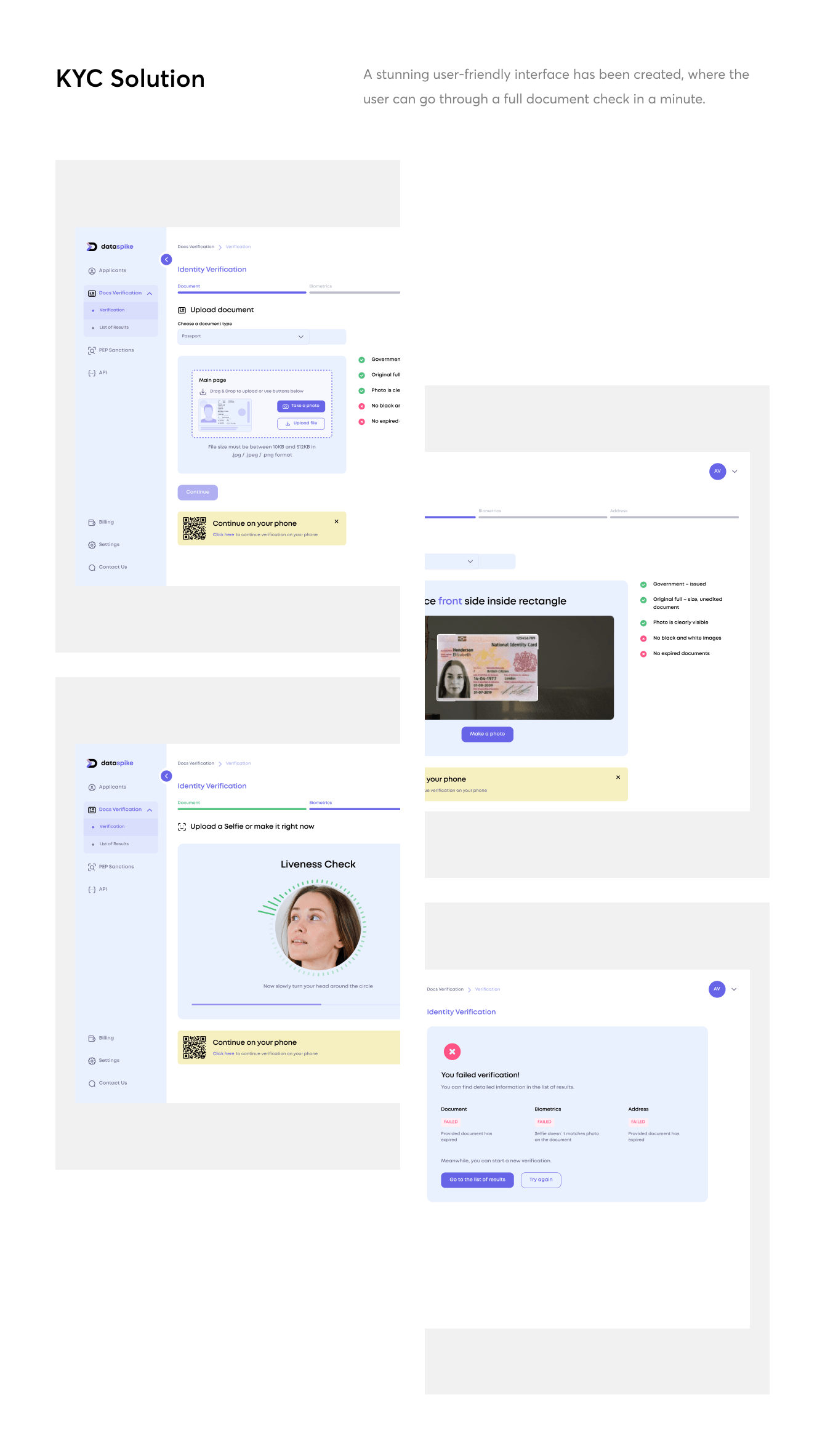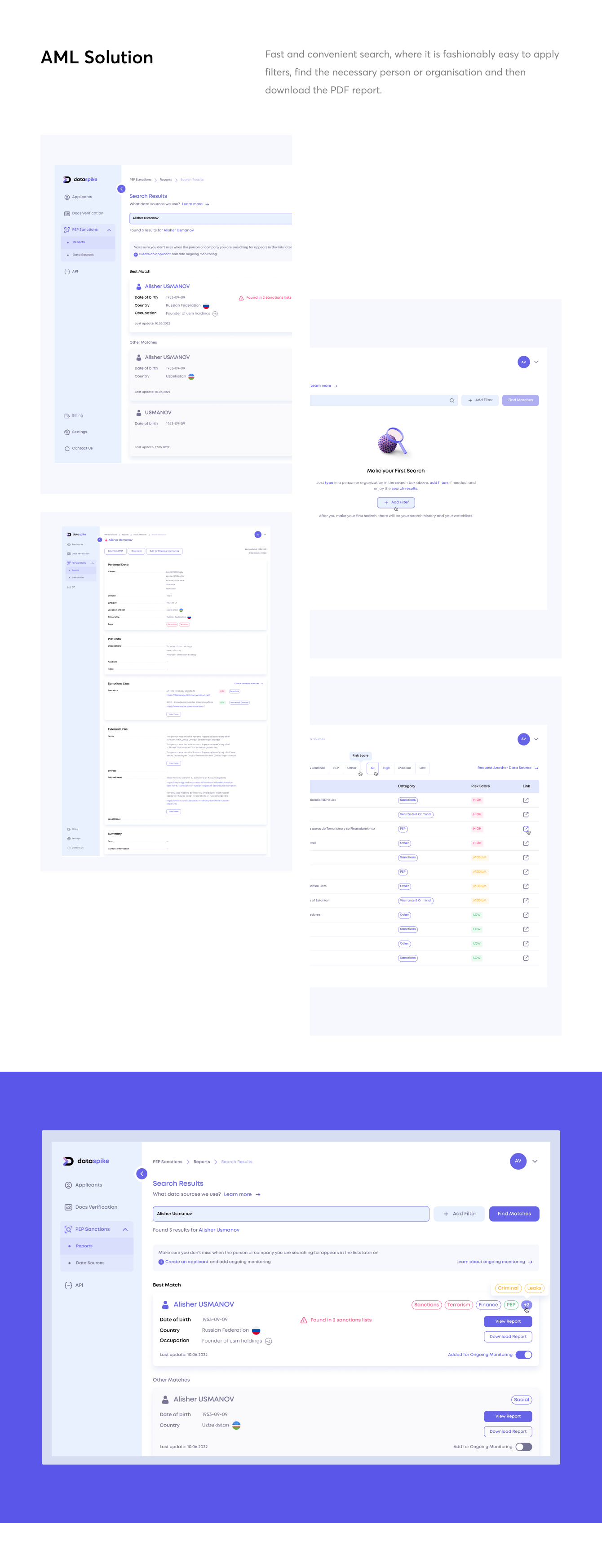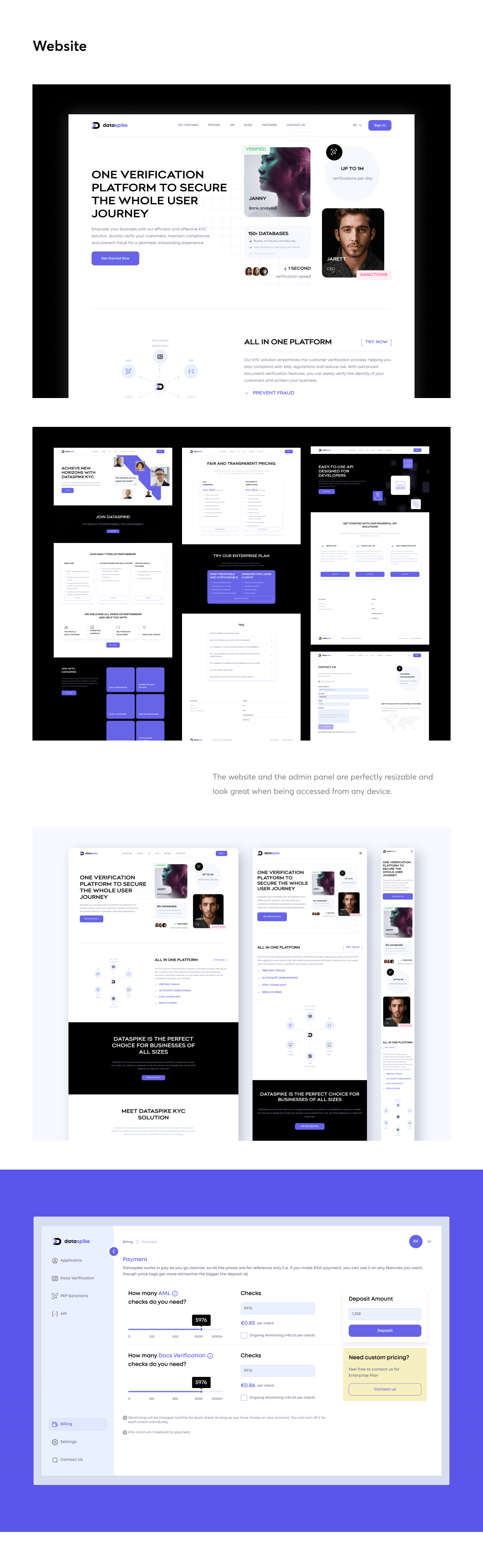 — дизайн платформы, включающей в себя KYC, дашборд, страницу биллинга и оплаты, поиск AML, историю верификаций, раздел администратора и др.