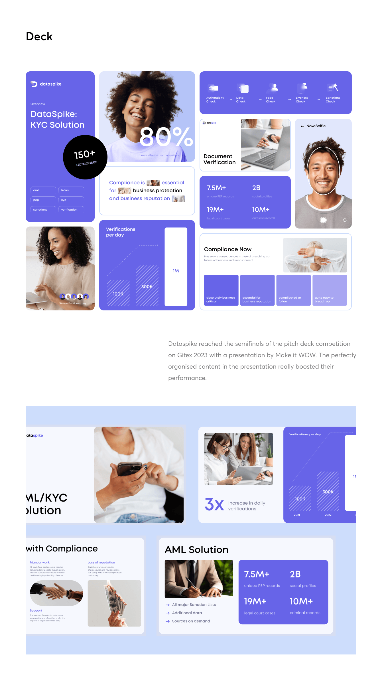— Созданы Pitch Deck и прочие маркетинговые материалы, которые позволяют DataSpike участвовать в профессиональных выставках, привлекать инвестиции в проект и новых клиентов