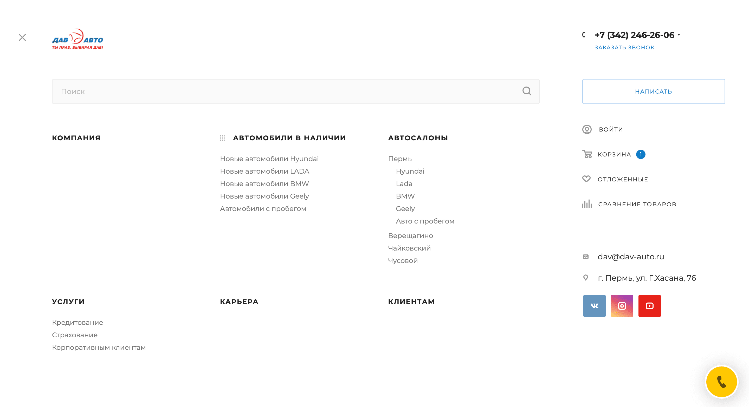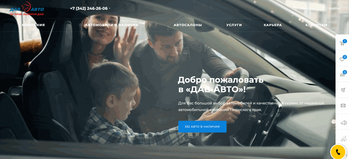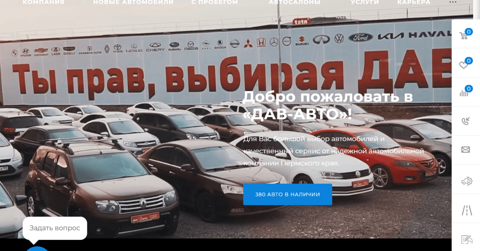 Дав-Авто - официальный дилер отечественных и зарубежных автомобилей в Пермском крае. Услугами компании пользуются тысячи клиентов на протяжении более чем 20 лет. Из них 15 лет Дав-Авто сотрудничает с нашим агентством. За все время работы мы помогали с разработкой сайта и посадочных страниц, делали SEO и настраивали контекстную рекламу.