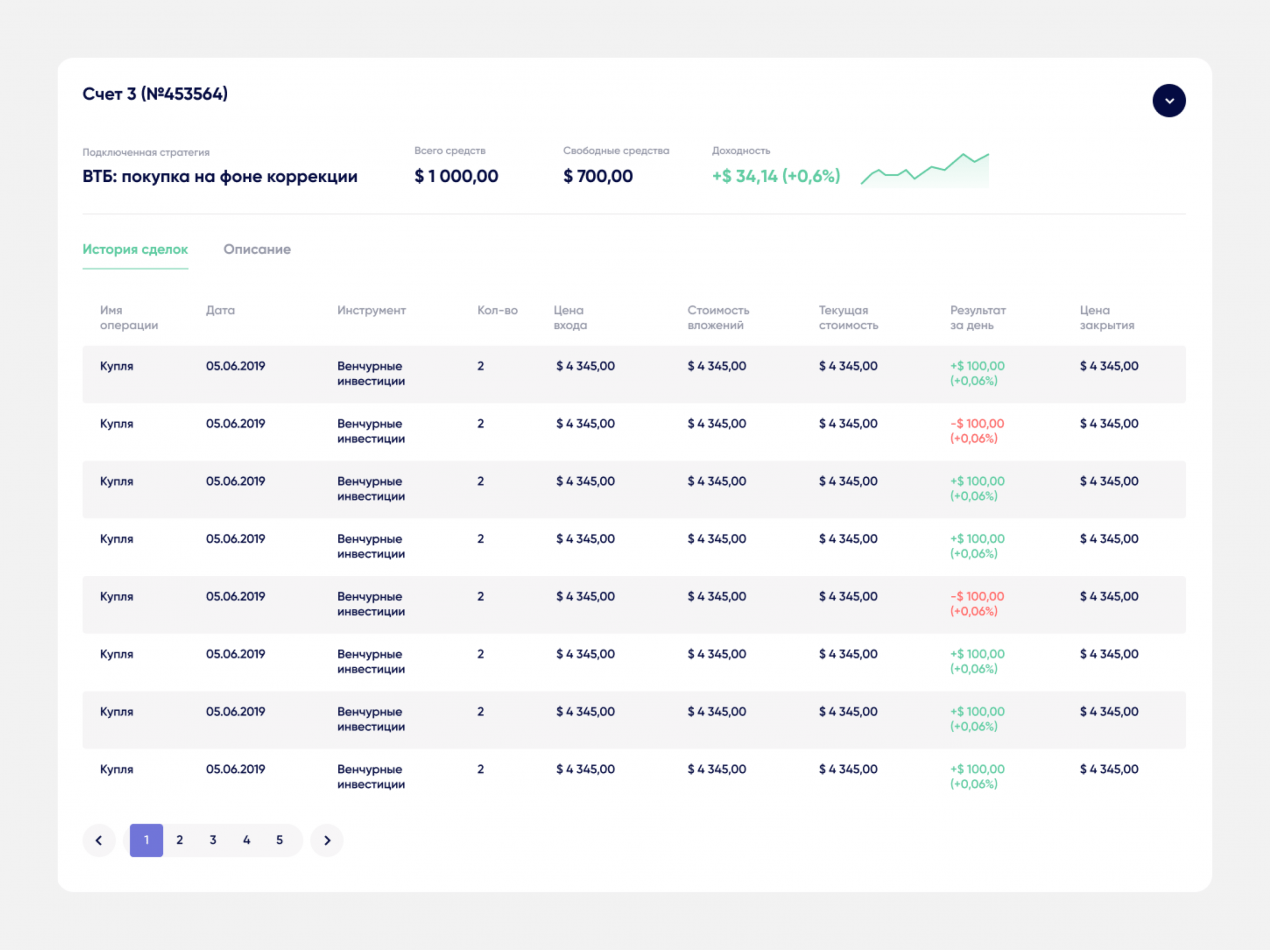 На ней есть все необходимые данные для принятия решения о подключении стратегии: история сделок и их результат, состав портфеля, параметры и подробное описание стратегии, а также чат с другими инвесторами, чтобы посоветоваться, если необходимо.