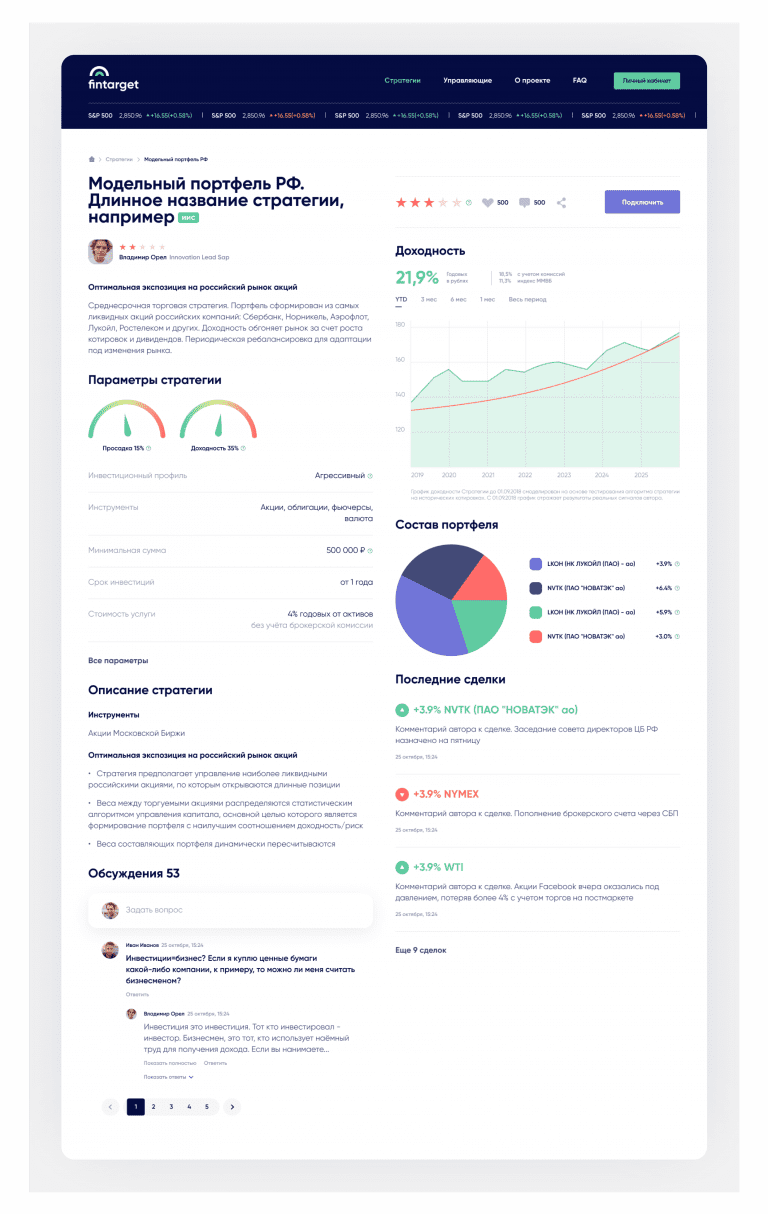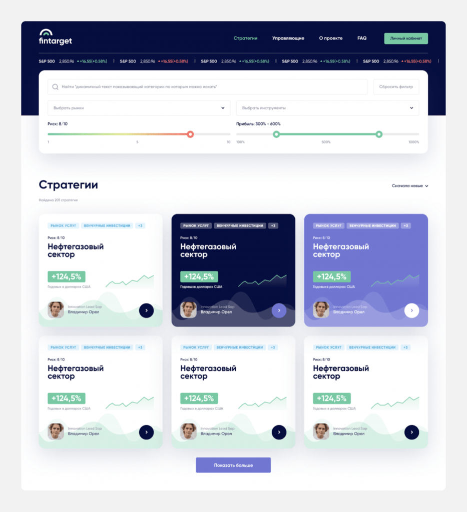 Продукт назвали Fintarget — магазин инвестиционных стратегий.