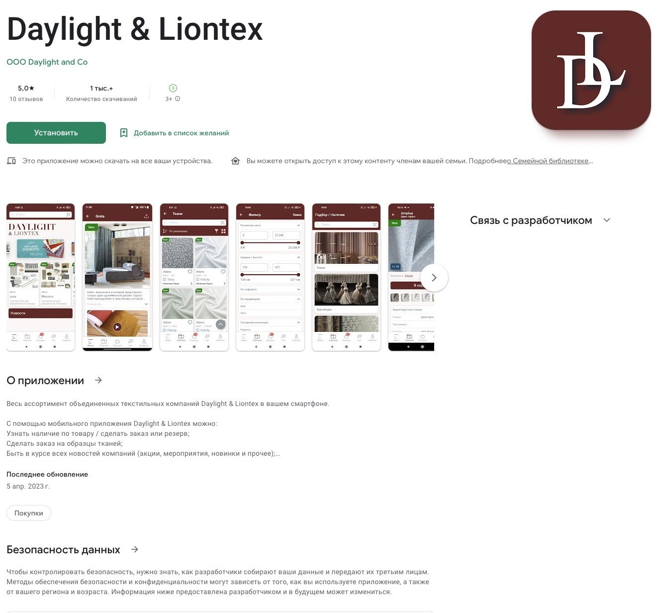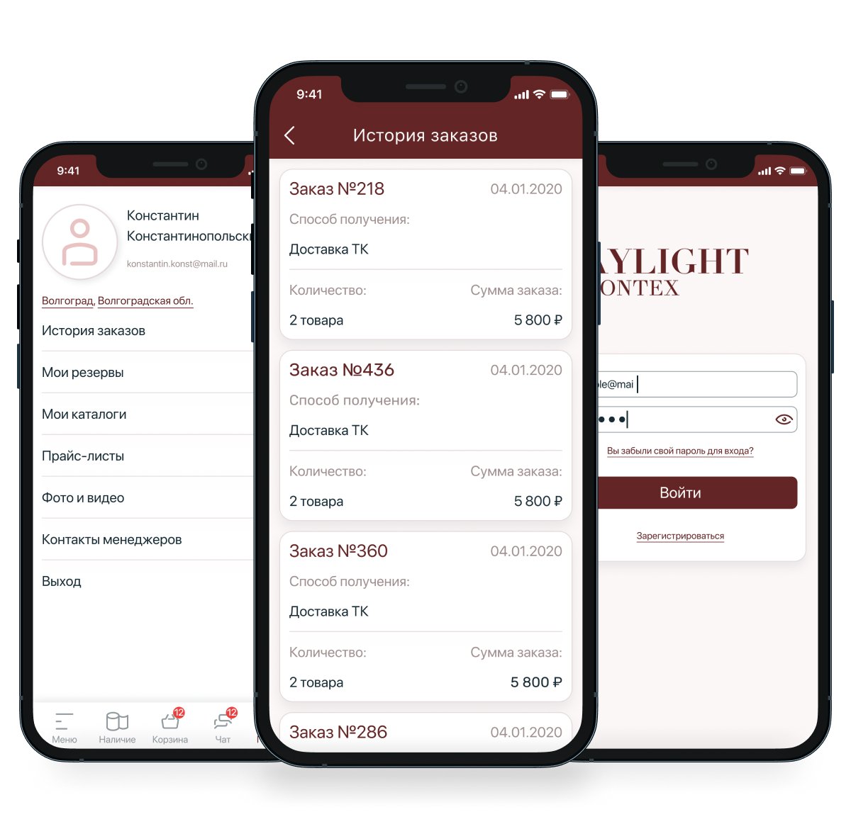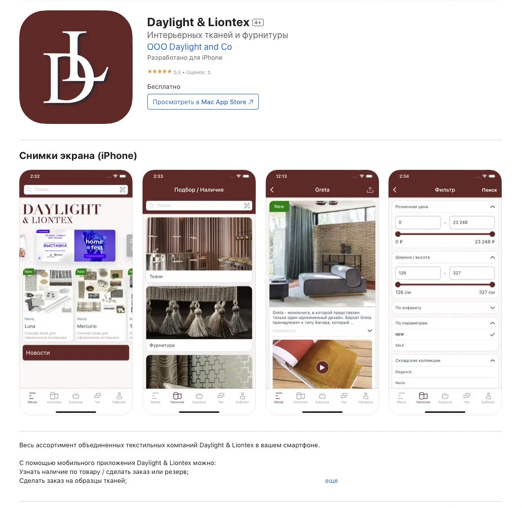 Интернет-магазин для оптовой продажи штор, разработка мобильного приложения для компании Daylight & Liontex из Москвы (iOS/Android).