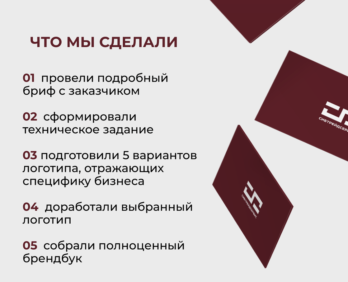 Задача: разработать фирменный стиль «под ключ»: от логотипа до брендирования выставочного стенда и деловой документации. Важно было сохранить серьёзный характер отрасли, но сделать визуал современным, структурным и запоминающимся.