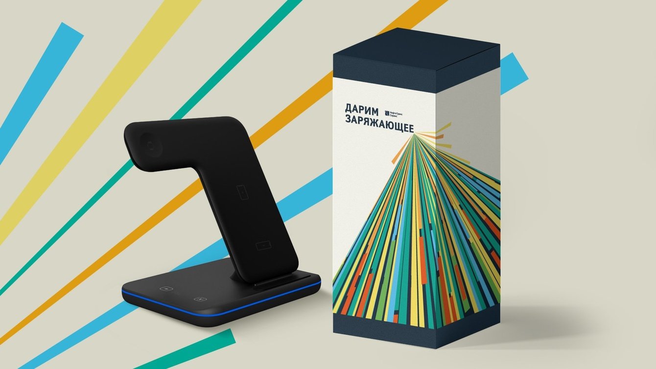 Основой набора стала бутылка с согревающим напитком и станция для беспроводной зарядки гаджетов. Очевидно, что и то, и другое органично ложится в концепцию света, тепла и энергии.
