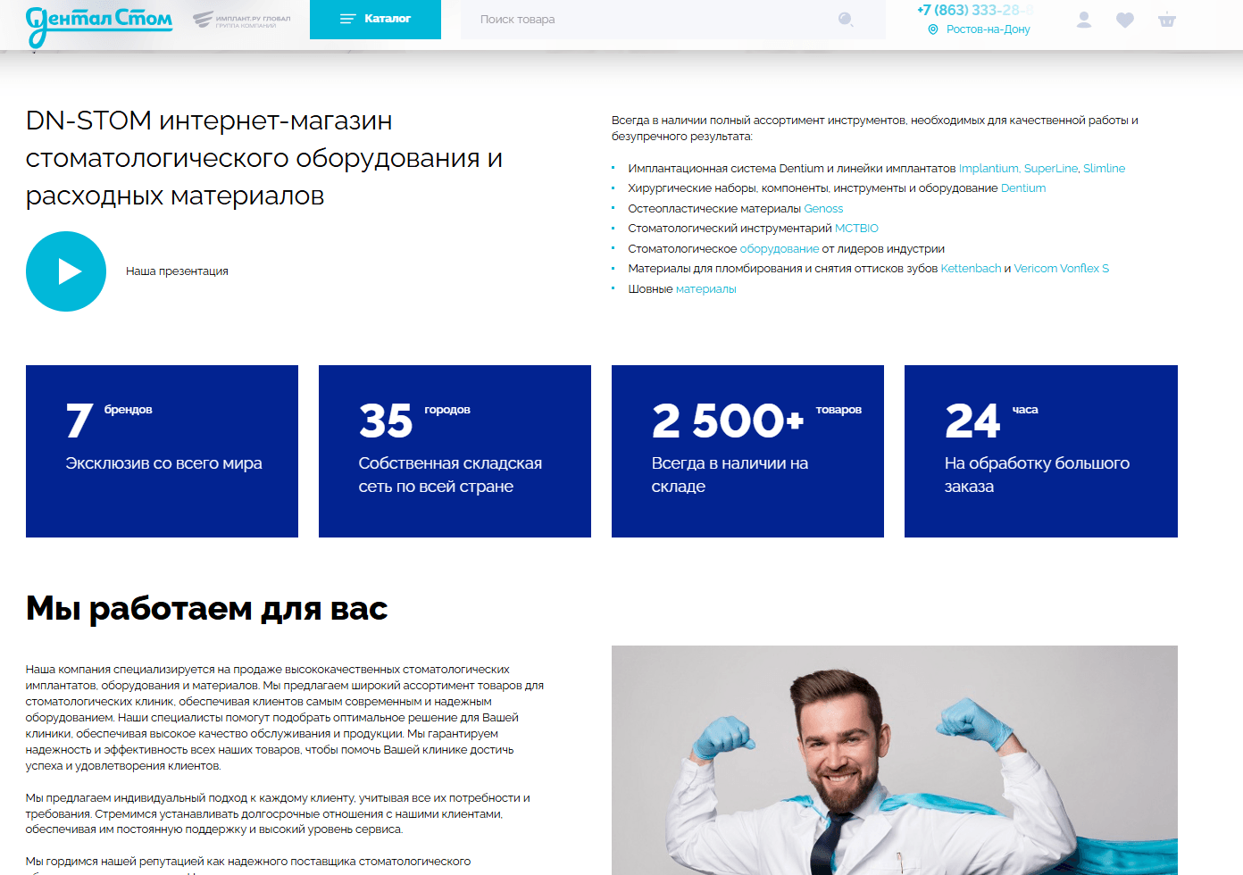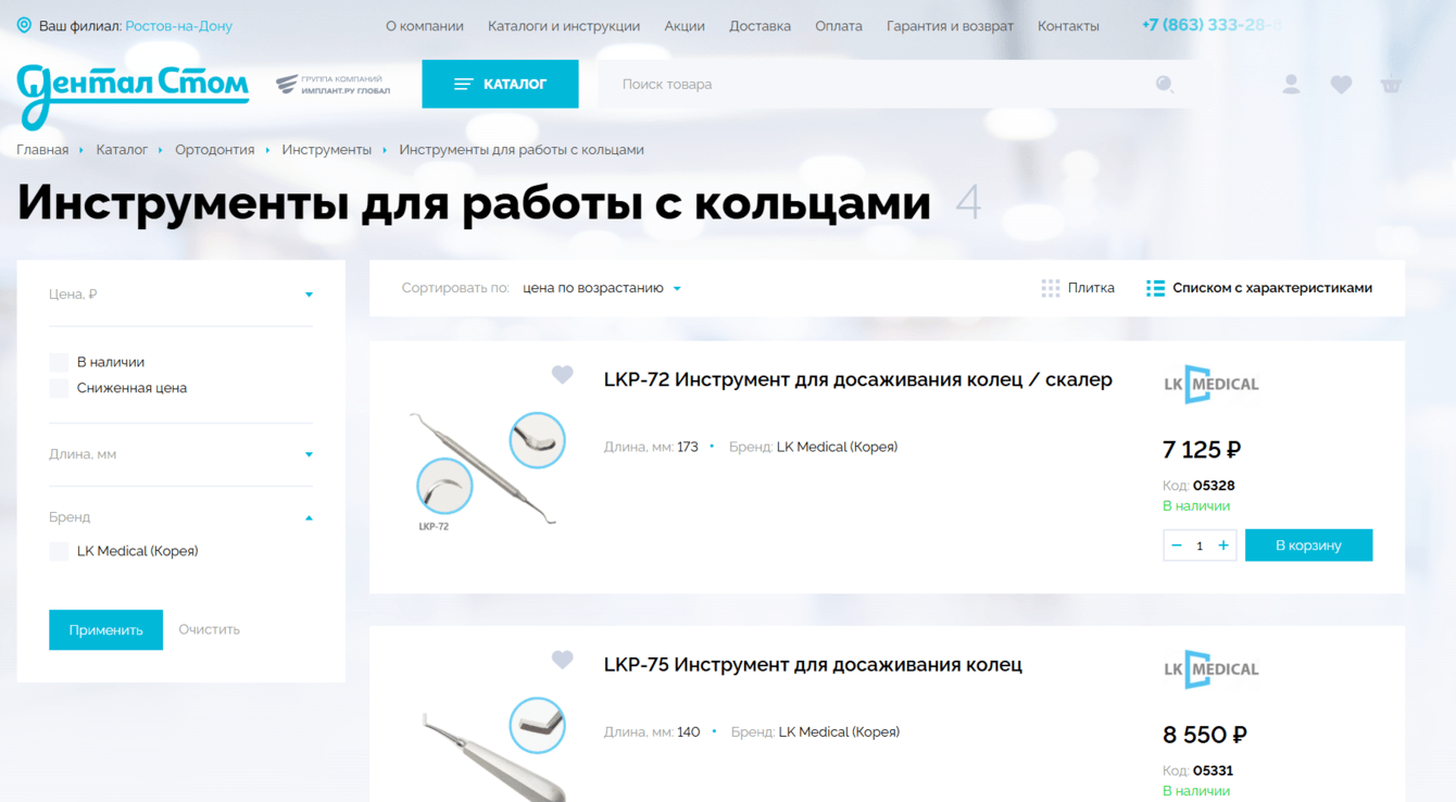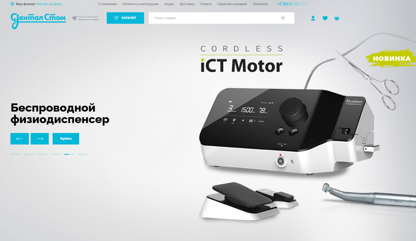 Мы разработали интернет-магазин «ДенталСтом», используя платформу CMS 1C-Bitrix, предоставляющую гибкость в управлении контентным наполнением сайта и встроенную систему аналитики.