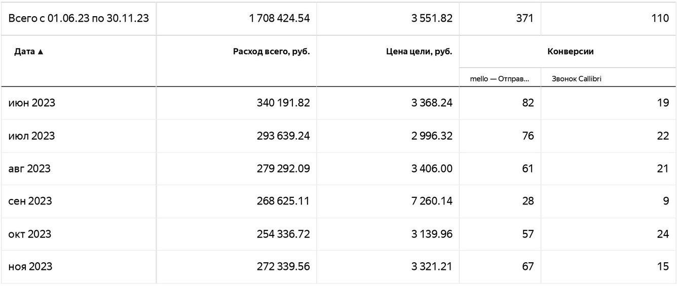 Получили неплохие результаты — 497 лидов по 1 592 рубля.