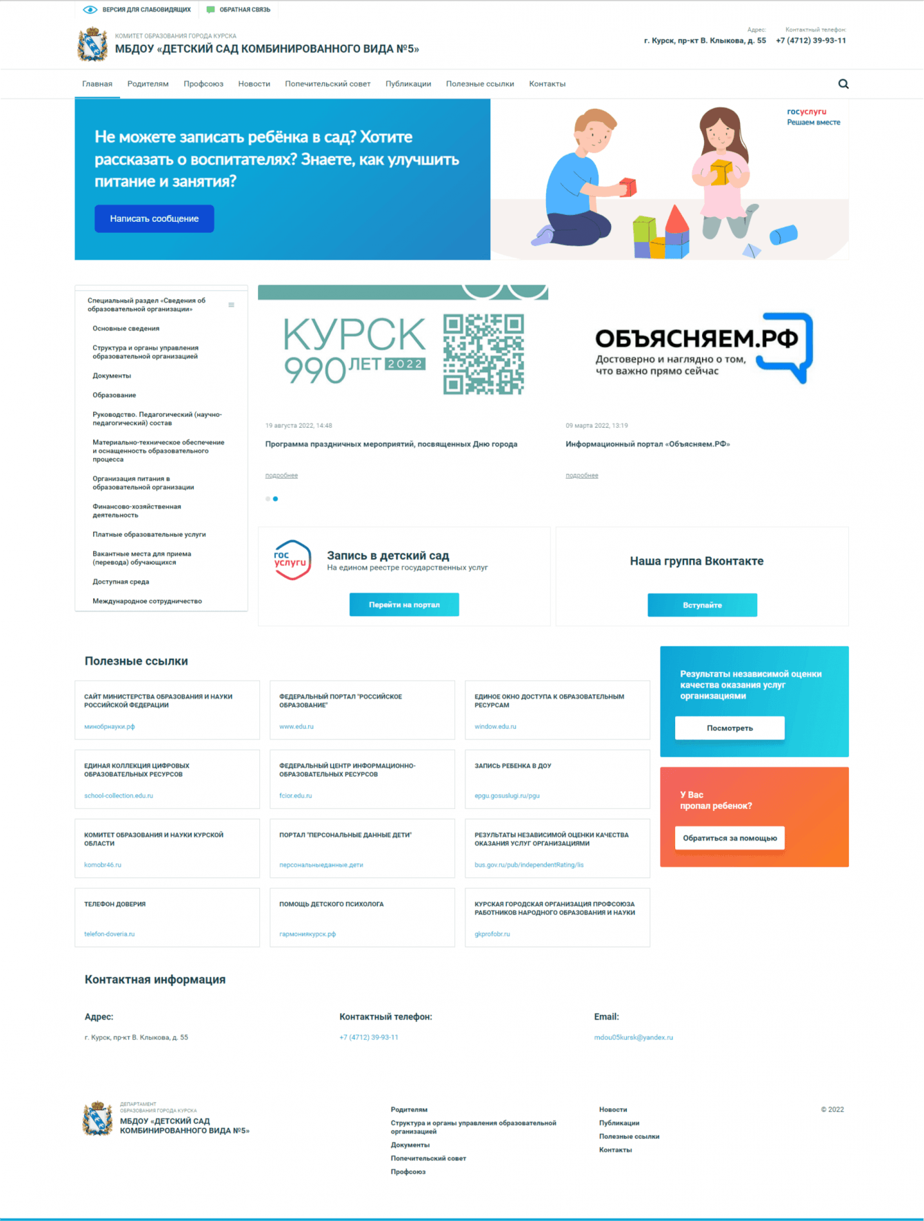Клиент: МБДОУ Детский сад № 5 г. Курска