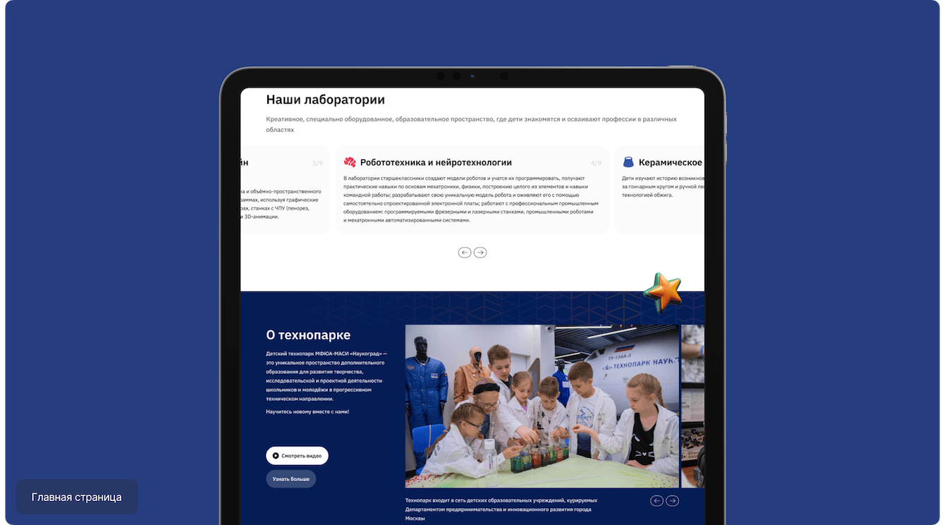 Заказчик обратился к нам с задачей создать современный, функциональный сайт детского технопарка «Наукоград».