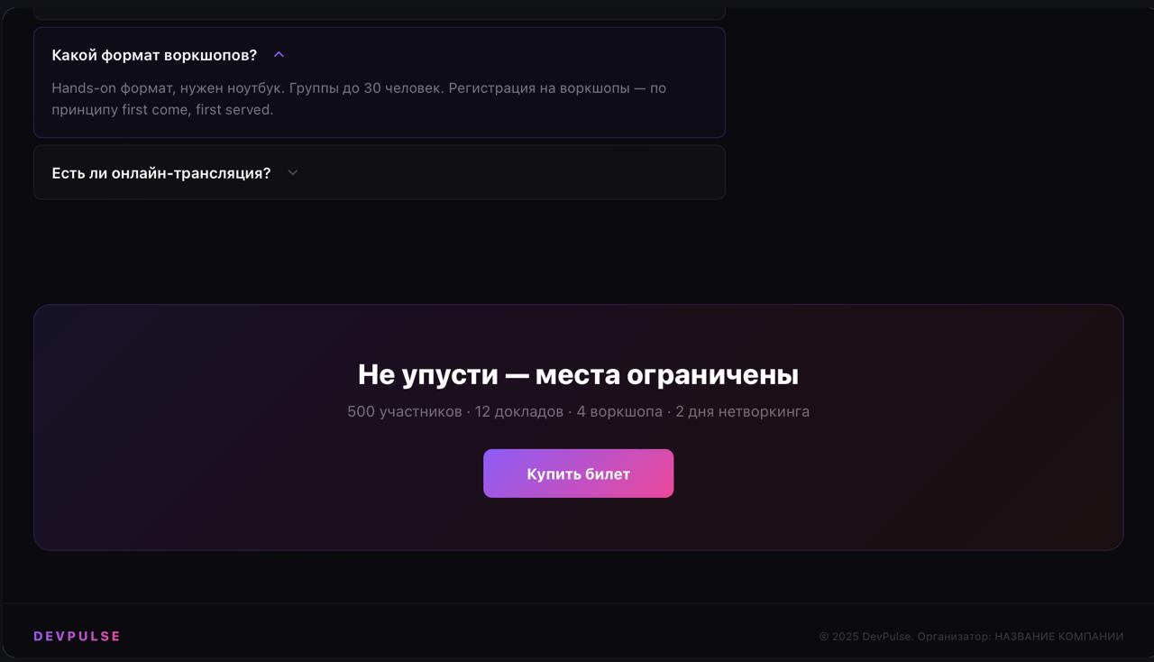 Клиент: IT-конференция DevPulse;