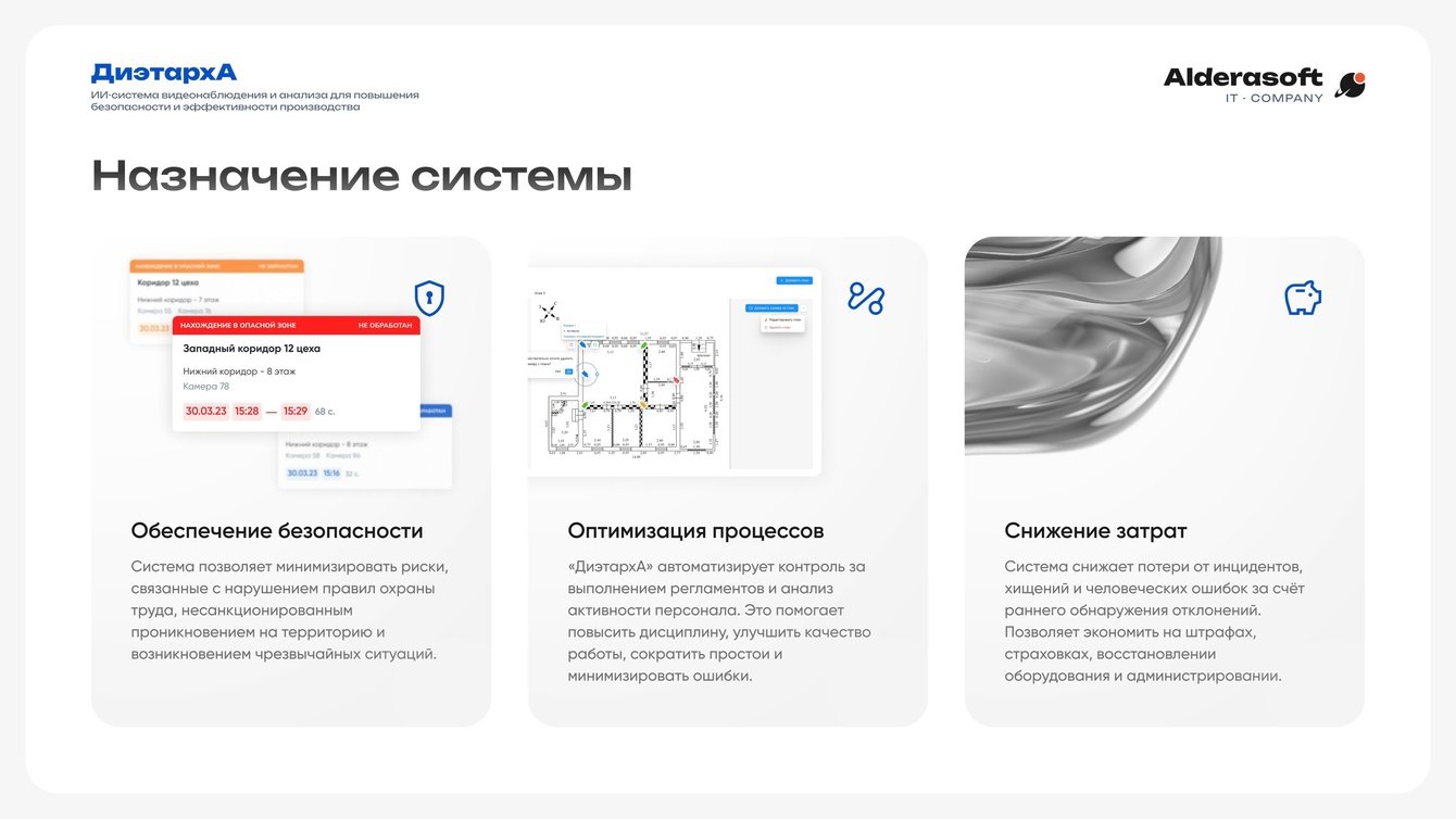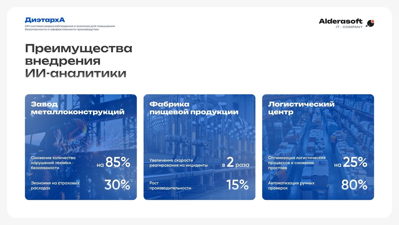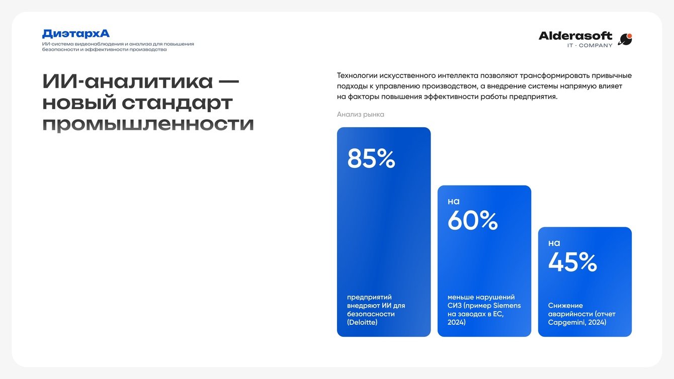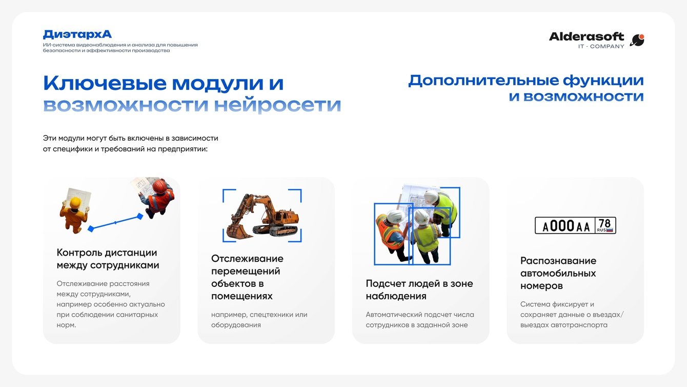 Мы убеждены, что будущее промышленности - за интеллектуальными системами безопасности. В проекте с этим предприятием мы не просто установили софт, а создали единую экосистему, которая защищает главную ценность, жизнь и здоровье людей. Особенно порадовало, что дообучение нейросети под специфическую форму клиента прошло быстро и точно, что подтвердило гибкость нашей платформы «ДиэтархА». Проект стал отличным примером того, как ИИ помогает не только предотвращать риски, но и делает производство прозрачнее и, в конечном счете, прибыльнее