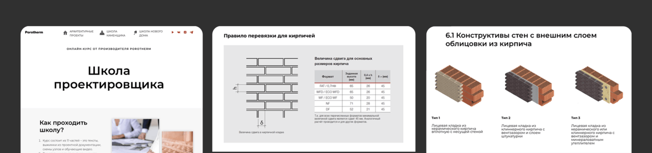 Работать с форматом онлайн-школ мы начали с 2020 года, фактически с начала пандемии, когда все офлайн-активности и программы резко закончились. Тогда мы вместе с Porotherm очень вовремя разработали два онлайн-курса.