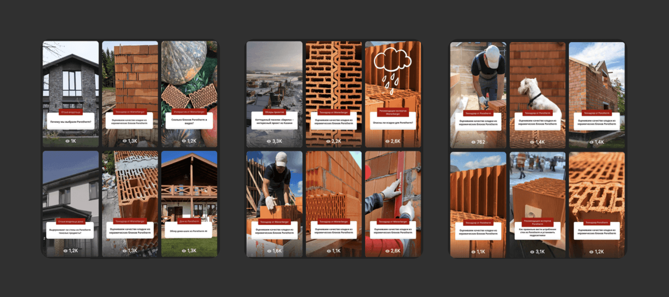 Для этого сегмента мы используем другой подход к контенту: в видео отвечаем на самые частые вопросы, показываем и объясняем, как повышается качество жизни в домах из керамических блоков, и иногда даем развлекательный контент. Вот примеры рубрик:
