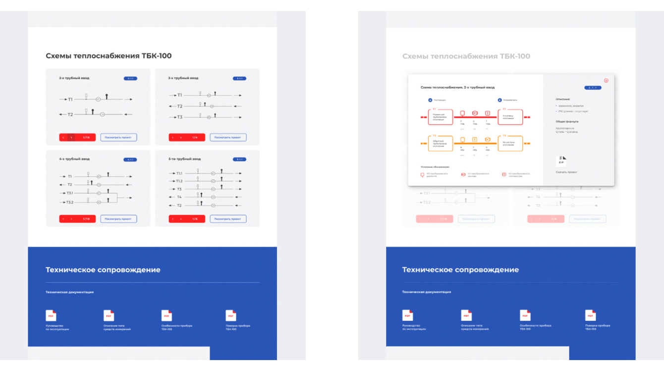 Дизайн, как презентации, так и лендинга, было решено сделать светлым и легкий для восприятия сложной технической информации. А разделы и подразделы лендинга организовали масштабными фотографическими сценами и коллажами из графики и фотоматериала. Внутри подразделов создали структуру информации о продукте, четко разделенную по логике и последовательности изучения. Схемы нарисовали визуально простыми и понятными с первого взгляда, логически упростили таблицы с их сложной иерархией.