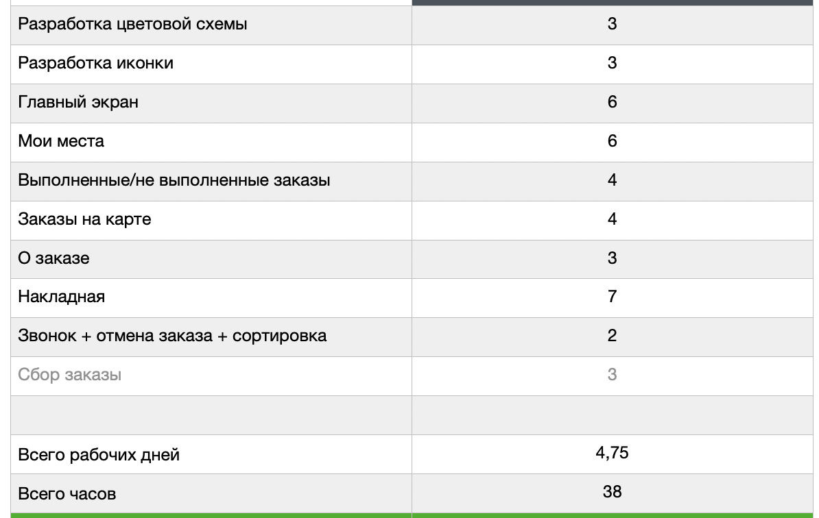 После утверждения плана работ, дизайна и технического задания вся команда принимается за оценку поставленных требований и на выходе мы предоставляем поэтапную оценку выполнения проекта