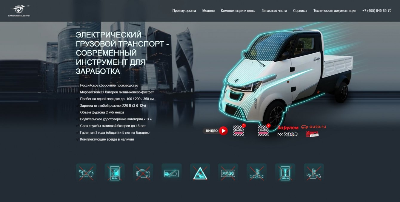 Разработка информационного сайта Kangaroo electro для дилера Энви Моторс.