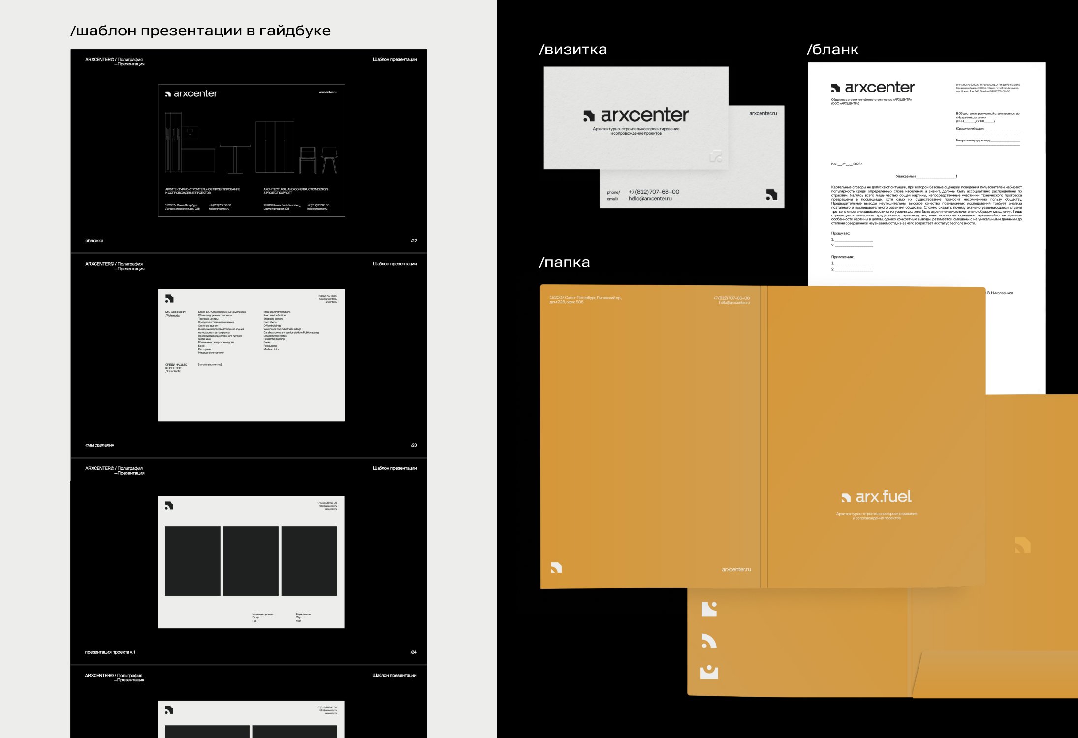 Чтобы айдентика ARXCENTER работала последовательно и узнаваемо во всех каналах, дополнительно мы разработали гайдбук.