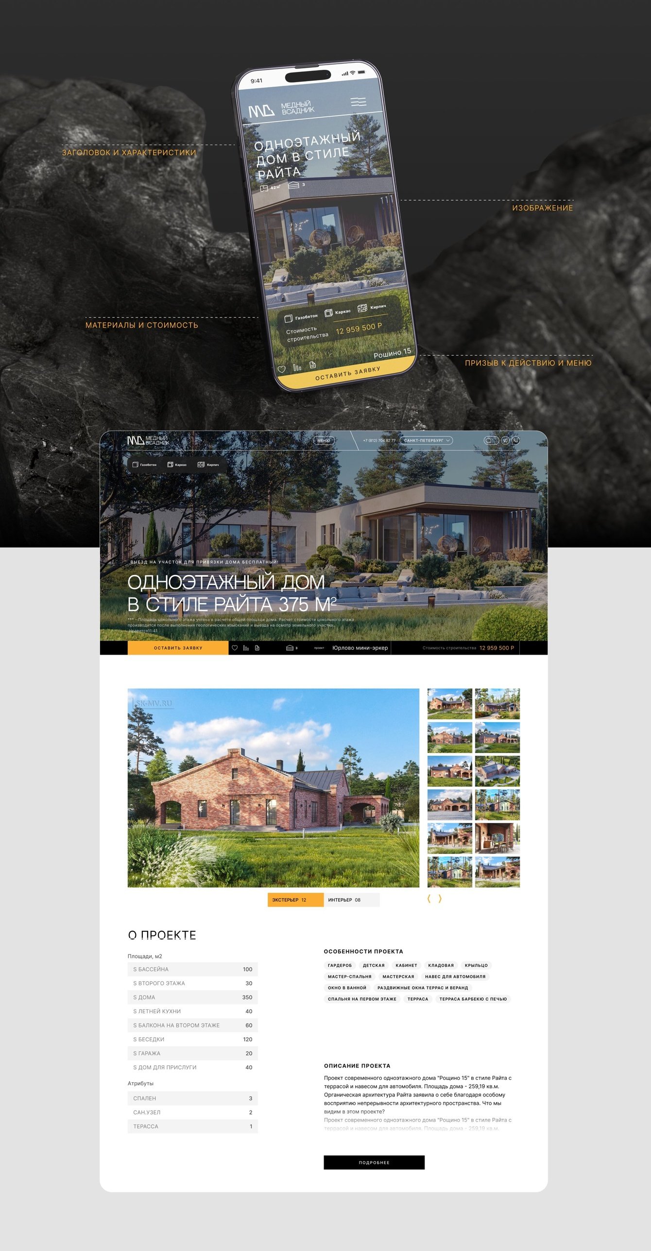 — наглядно показали экспертизу «Медного Всадника», добавив слайдер “Проект-реализация”, отображающий как построенный дом полностью соответствует проекту на рендере в самых мелких деталях;